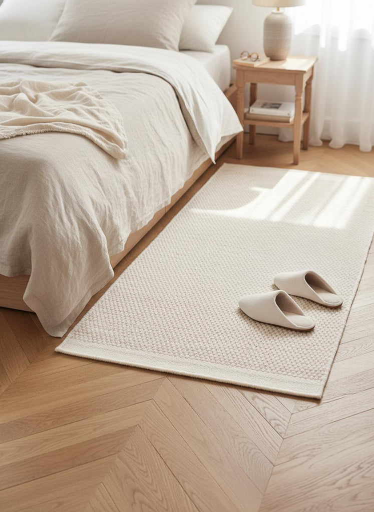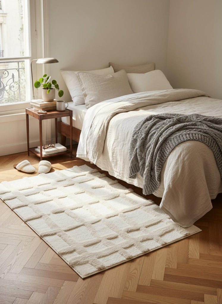 Dans le salon, le tapis crème structure l’espace et crée un lien visuel entre le canapé, la table basse et les fauteuils. Placé au centre de la pièce, il diffuse une lumière douce et rend l’ensemble plus accueillant. Dans la chambre, il devient une invitation à la détente, un cocon de douceur au pied du lit. Dans un couloir ou une entrée, un modèle à poils courts apporte de la clarté et un accueil chaleureux dès le premier pas. Même dans la salle à manger, un grand tapis crème glissé sous la table met en valeur le mobilier et adoucit l’ambiance, tout en restant facile à assortir grâce à sa neutralité.