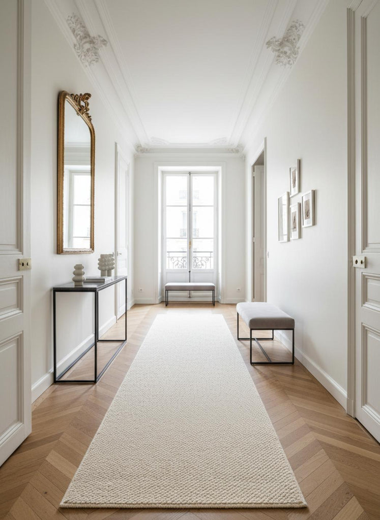 Contrairement aux idées reçues, un tapis clair n’est pas plus difficile à entretenir. Un aspirateur régulier suffit à préserver son éclat et à éviter l’accumulation de poussière. En cas de tache, il suffit d’agir rapidement avec un chiffon doux et un peu d’eau tiède savonneuse. Pour raviver les fibres, un nettoyage à la vapeur léger une à deux fois par an redonne au tapis toute sa fraîcheur. Sa teinte crème, légèrement nuancée, dissimule d’ailleurs mieux qu’on ne le pense les petites marques du quotidien, tout en conservant son aspect raffiné au fil des années.