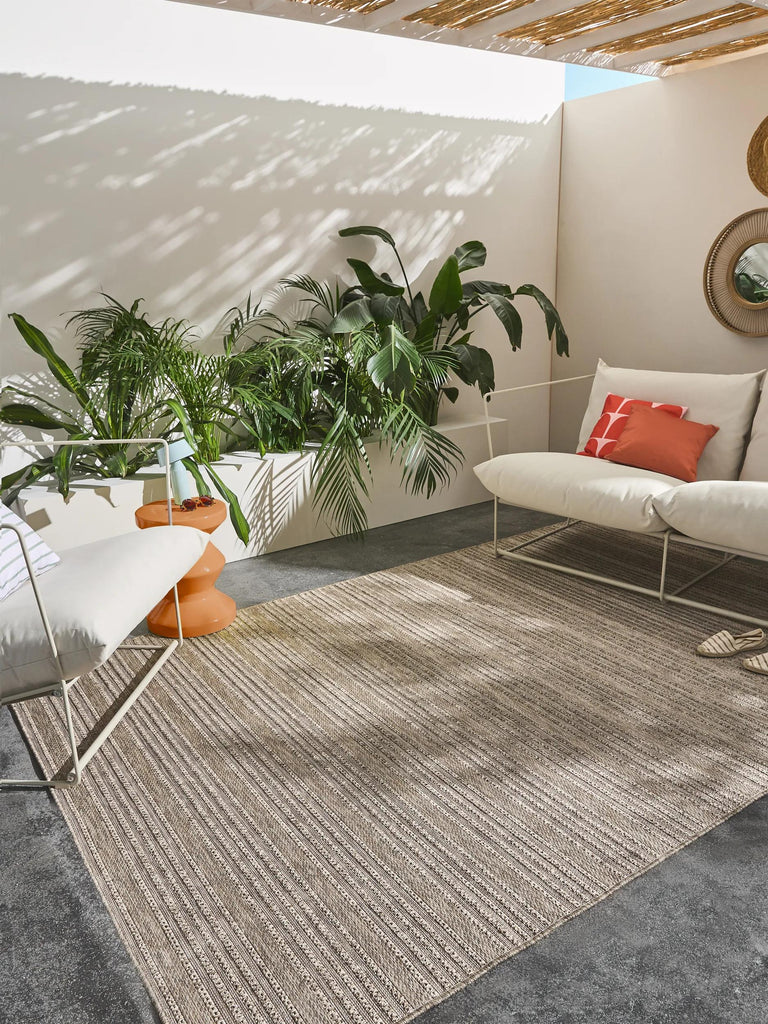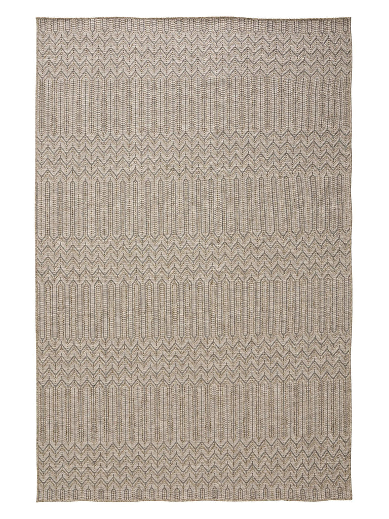 Tapis scandinave motif géométrique rond marron naturel d'intérieur et d'extérieur 160 cm de diamètre