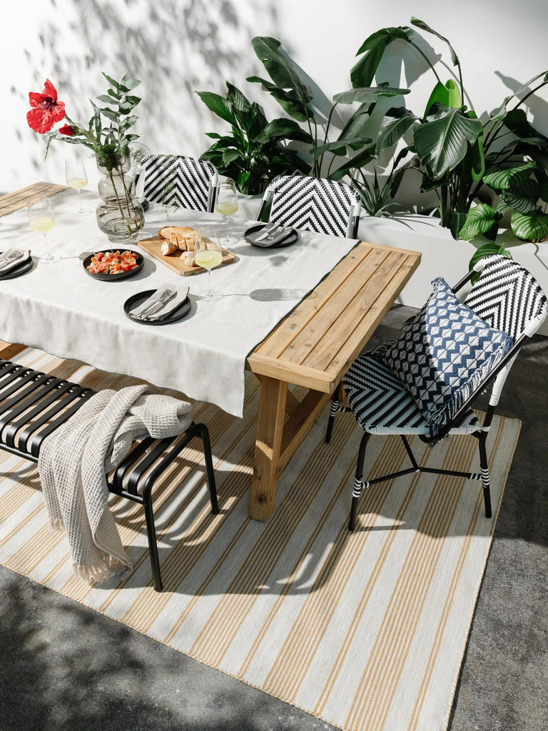 Un tapis sur la terrasse, c’est le confort du salon qui s’invite dehors. On y marche pieds nus, on s’y installe pour lire, déjeuner ou simplement se reposer. Le tapis d’extérieur pour terrasse unit les éléments du décor et apporte cette douceur visuelle qui transforme un espace fonctionnel en véritable lieu de vie. Il ne se contente pas d’être pratique, il inspire. Facile à entretenir, il se nettoie d’un simple jet d’eau et retrouve aussitôt sa fraîcheur. Durable, esthétique et intemporel, il s’intègre à toutes les saisons et à tous les styles. C’est ce petit plus, presque invisible mais essentiel, qui donne à la terrasse son caractère unique et la rend irrésistiblement accueillante.