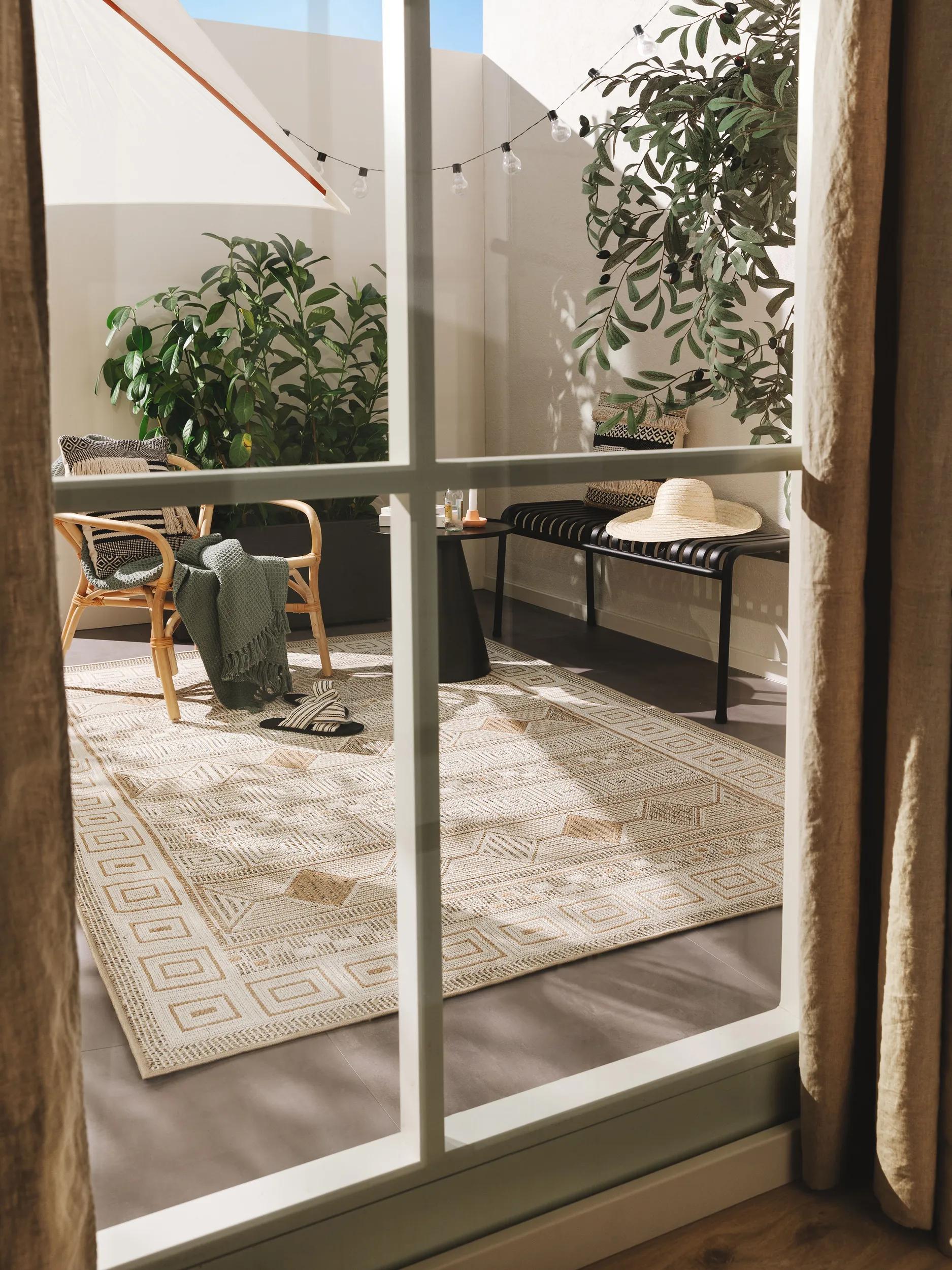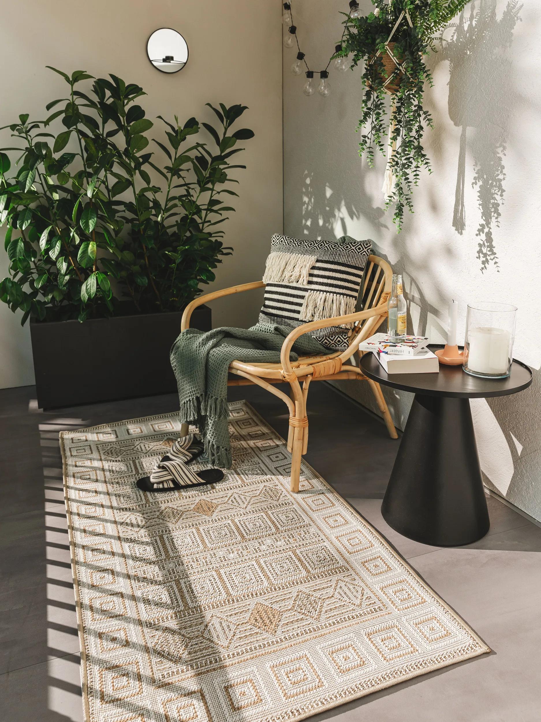 Tapis berbère motif ethnique crème et beige d'intérieur et d'extérieur 80x150 cm