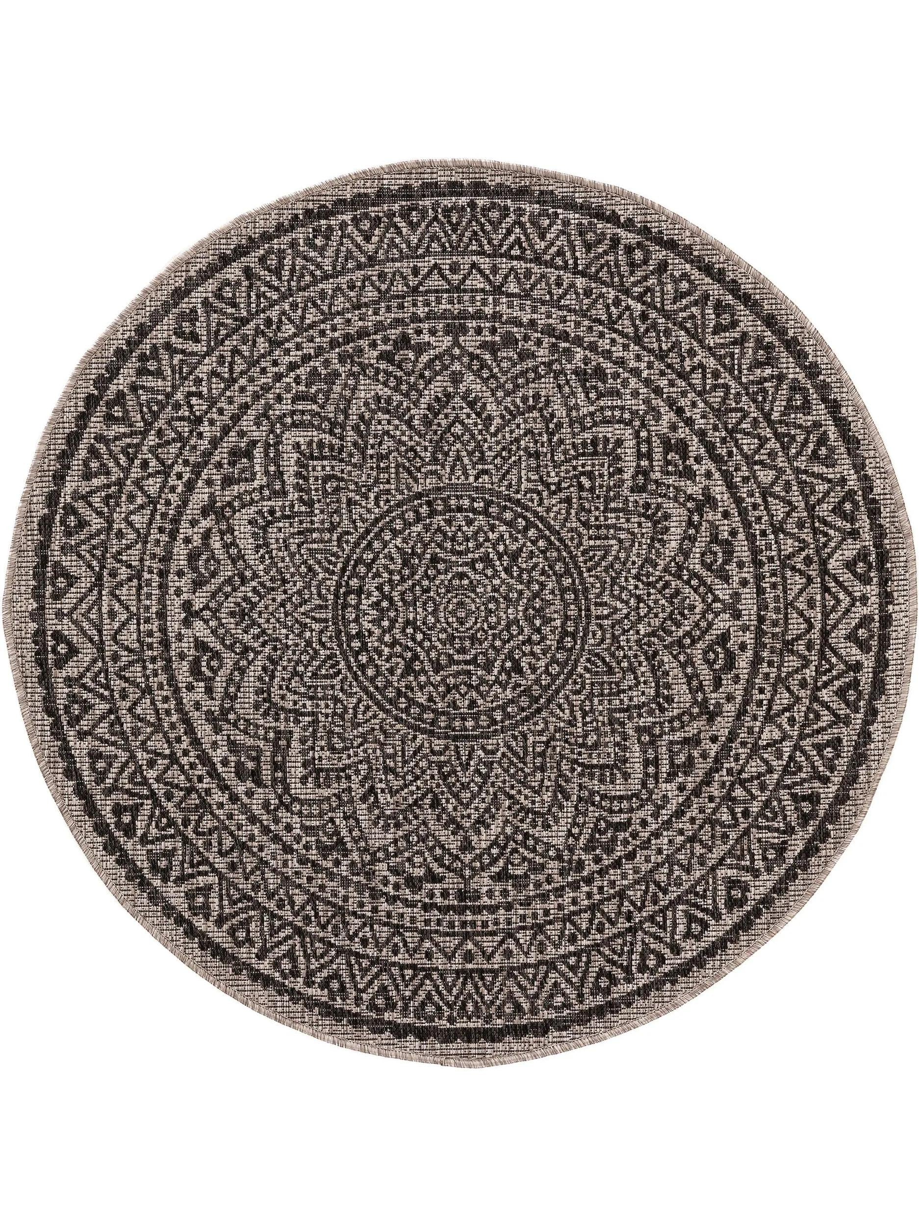 Tapis bohème motif mandala rond beige et marron d'intérieur et d'extérieur 150 cm de diamètre