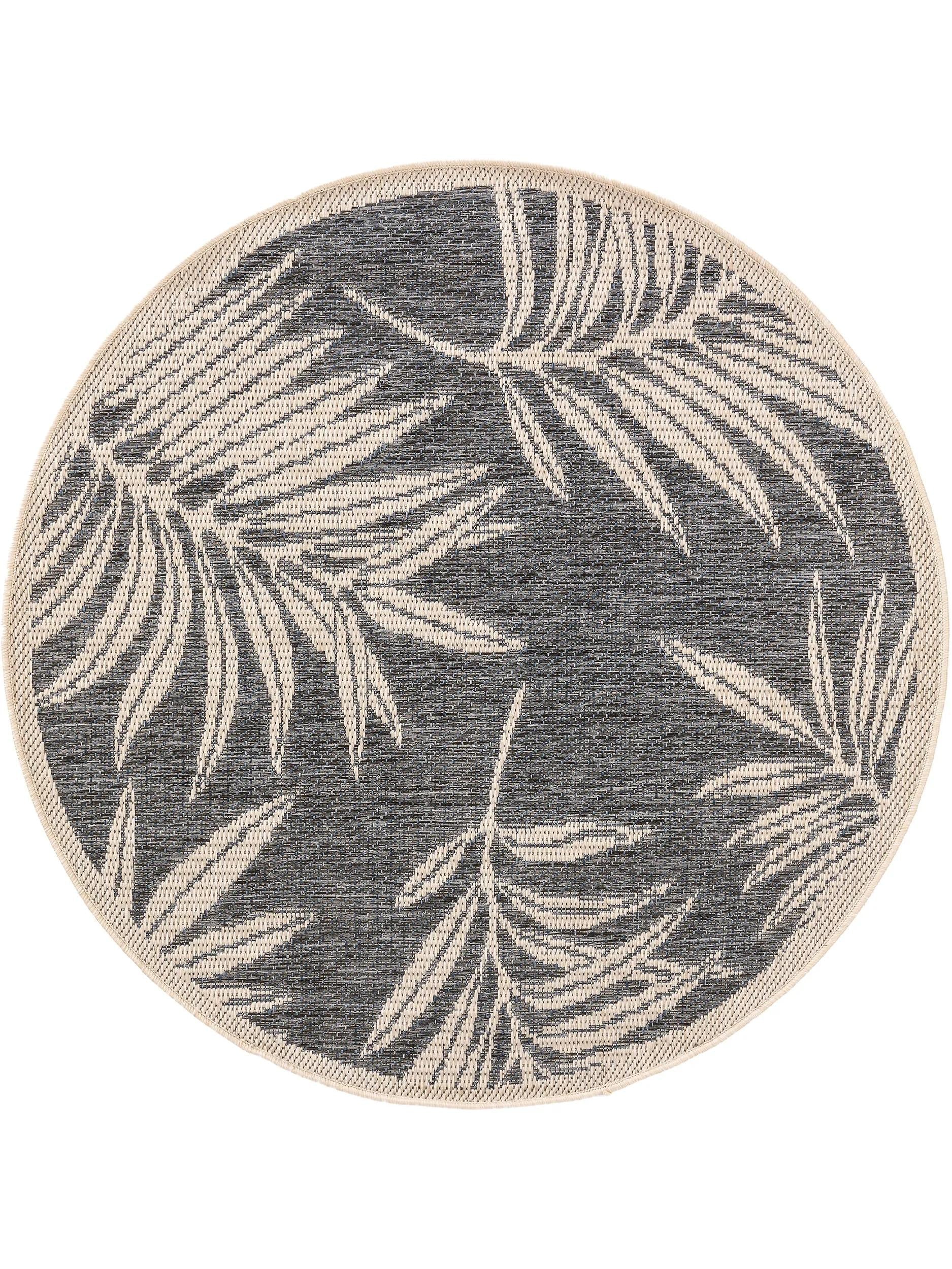 Tapis moderne motif à fleurs rond gris et beige d'intérieur et d'extérieur 130 cm de diamètre