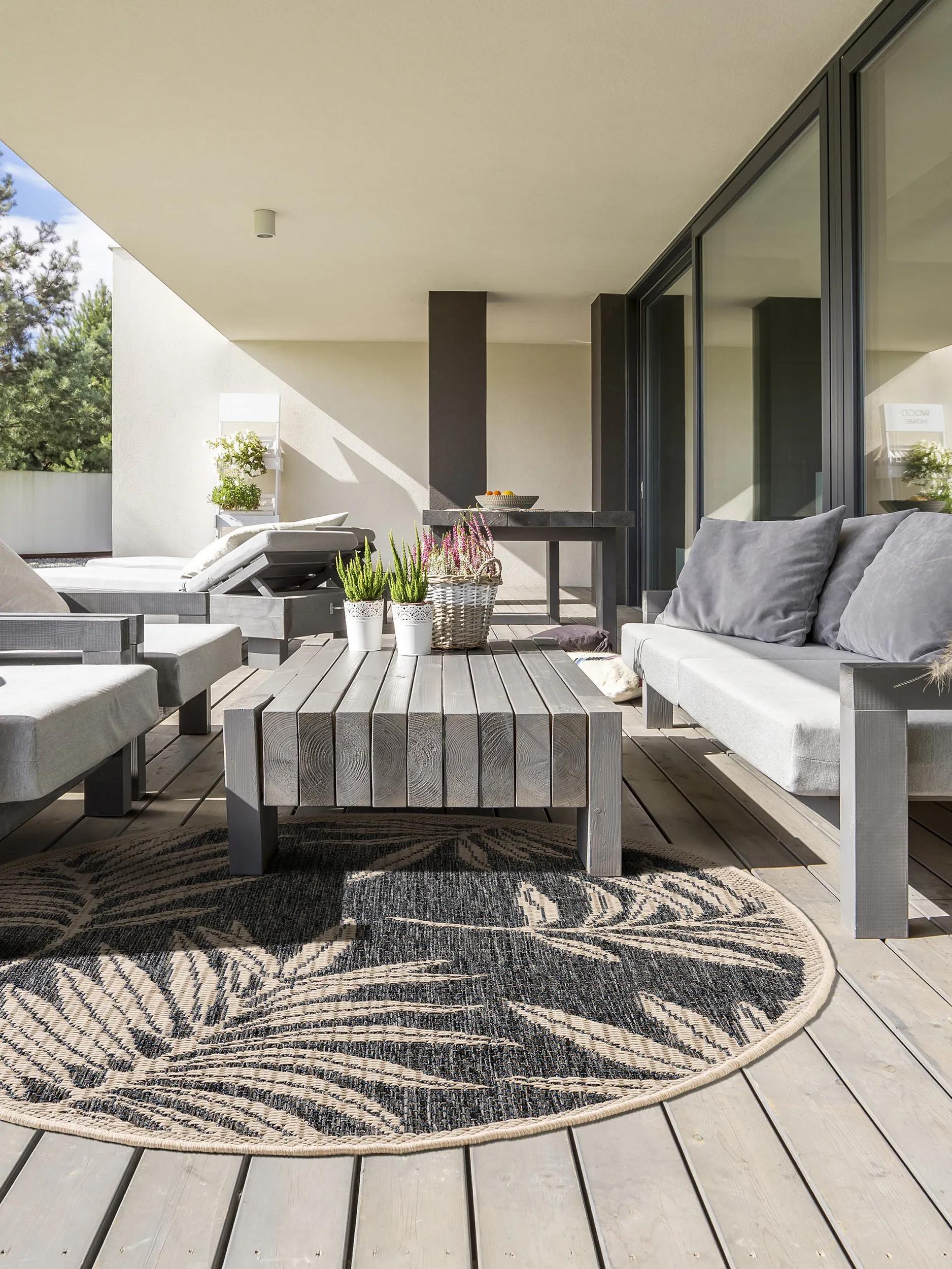 Comme une rosace posée au sol, ce tapis moderne rond orné d’un motif à fleurs déploie une élégance douce et intemporelle. Ses teintes de gris et de beige s’entrelacent avec subtilité, créant une harmonie délicate qui adoucit les espaces extérieurs tout en leur donnant du relief. Dans son diamètre de 130 cm, il s’intègre parfaitement sous une petite table, au centre d’un salon de terrasse ou dans un coin détente ensoleillé. Le gris, à la fois neutre et raffiné, équilibre la chaleur du beige pour une atmosphère sereine et contemporaine. Les motifs floraux, stylisés avec finesse, rappellent la nature sans jamais l’imiter, comme une évocation poétique du végétal au cœur du design. Ce tapis rond invite à la détente et à la convivialité, transformant le sol en un écrin visuel où la lumière joue avec les contours. Il capture l’esprit d’un été paisible, celui où la beauté se niche dans la simplicité et la douceur des formes.