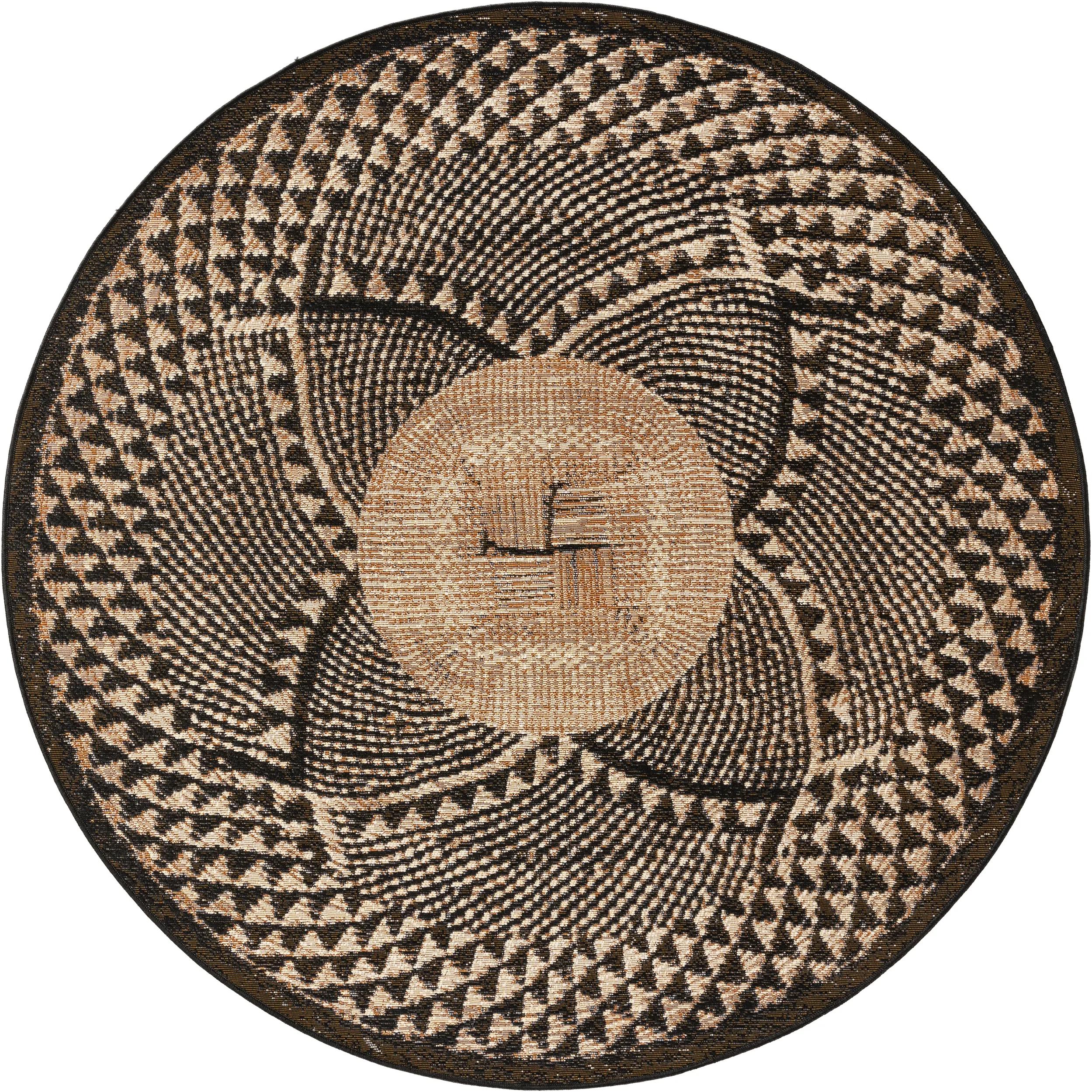 Tapis ethnique rond noir et beige d'intérieur et d'extérieur 160 cm de diamètre