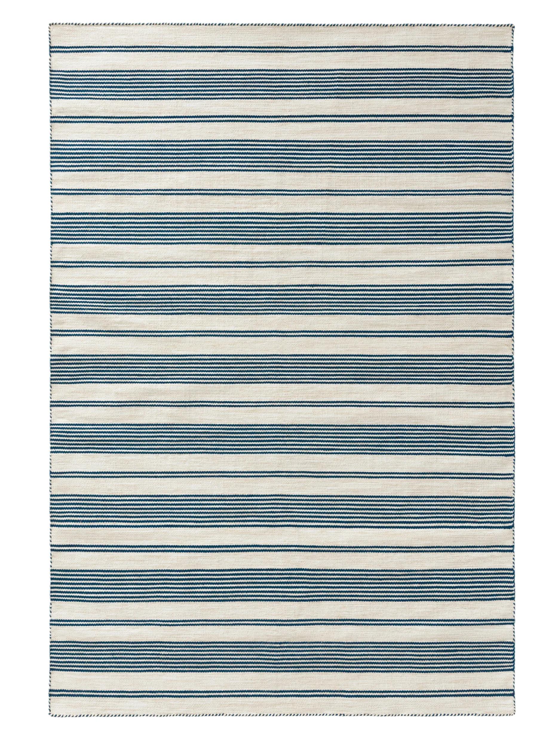 Tapis scandinave motif rayé beige et bleu d'intérieur et d'extérieur 80x150 cm