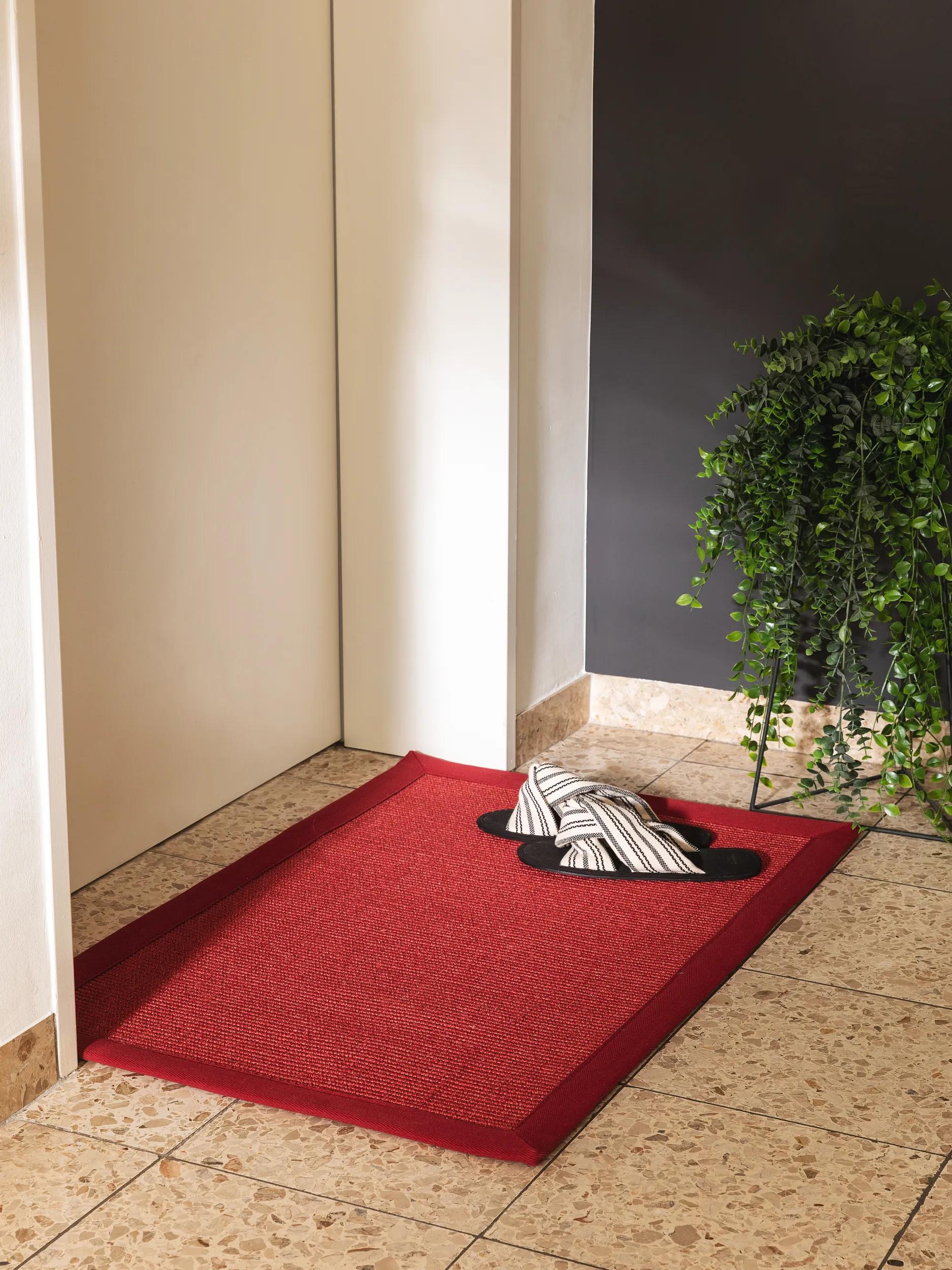 Doux au regard et sobre dans ses intentions, ce paillasson incarne l’essence du style scandinave par sa simplicité lumineuse et ses lignes épurées. La teinte rouge se pose comme un point chaud discret, une note chaleureuse qui respecte la clarté naturelle des sols en bois clair et des murs lumineux.