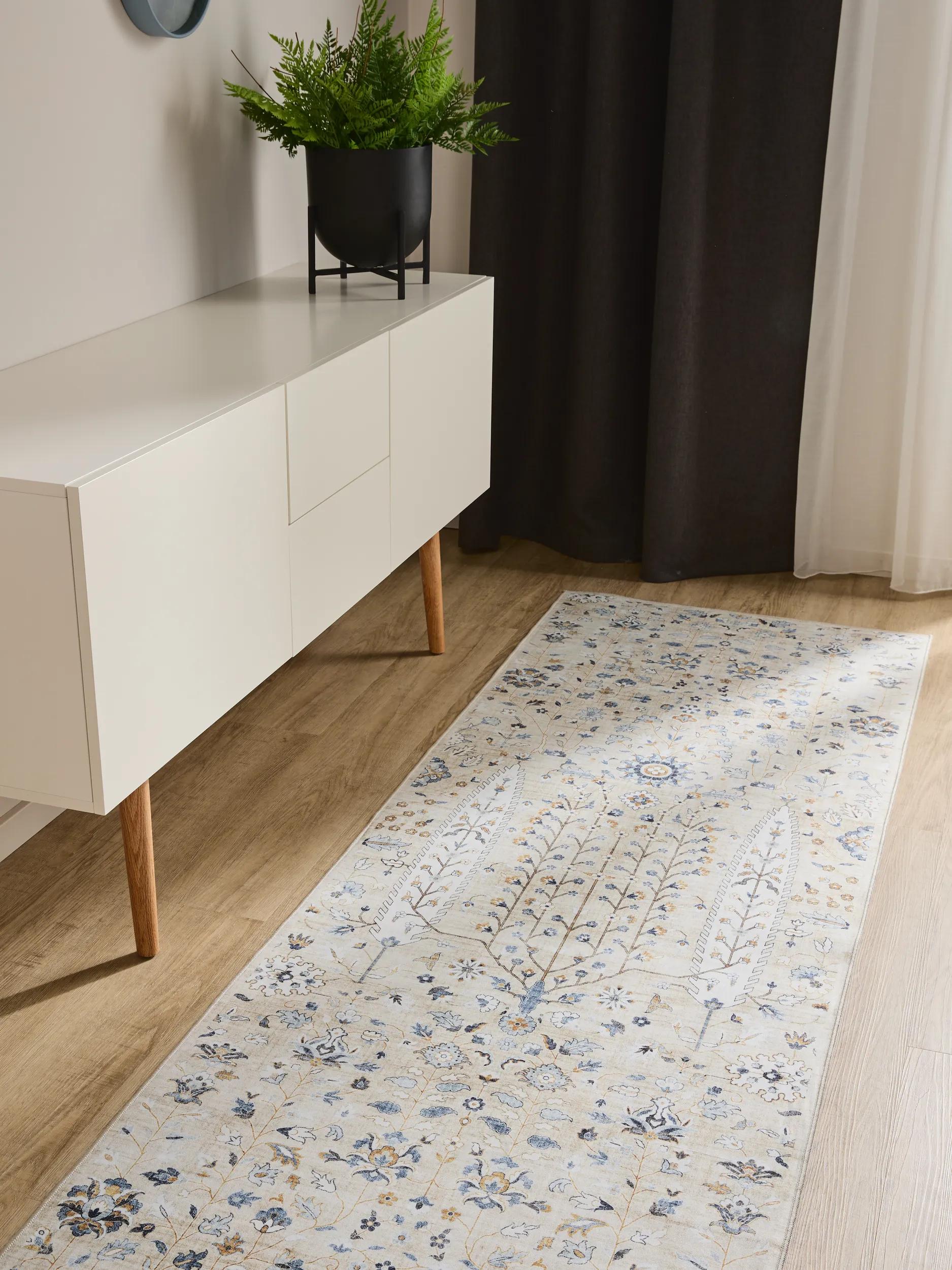 Tapis à fleurs de couloir beige lavable 80x240 cm