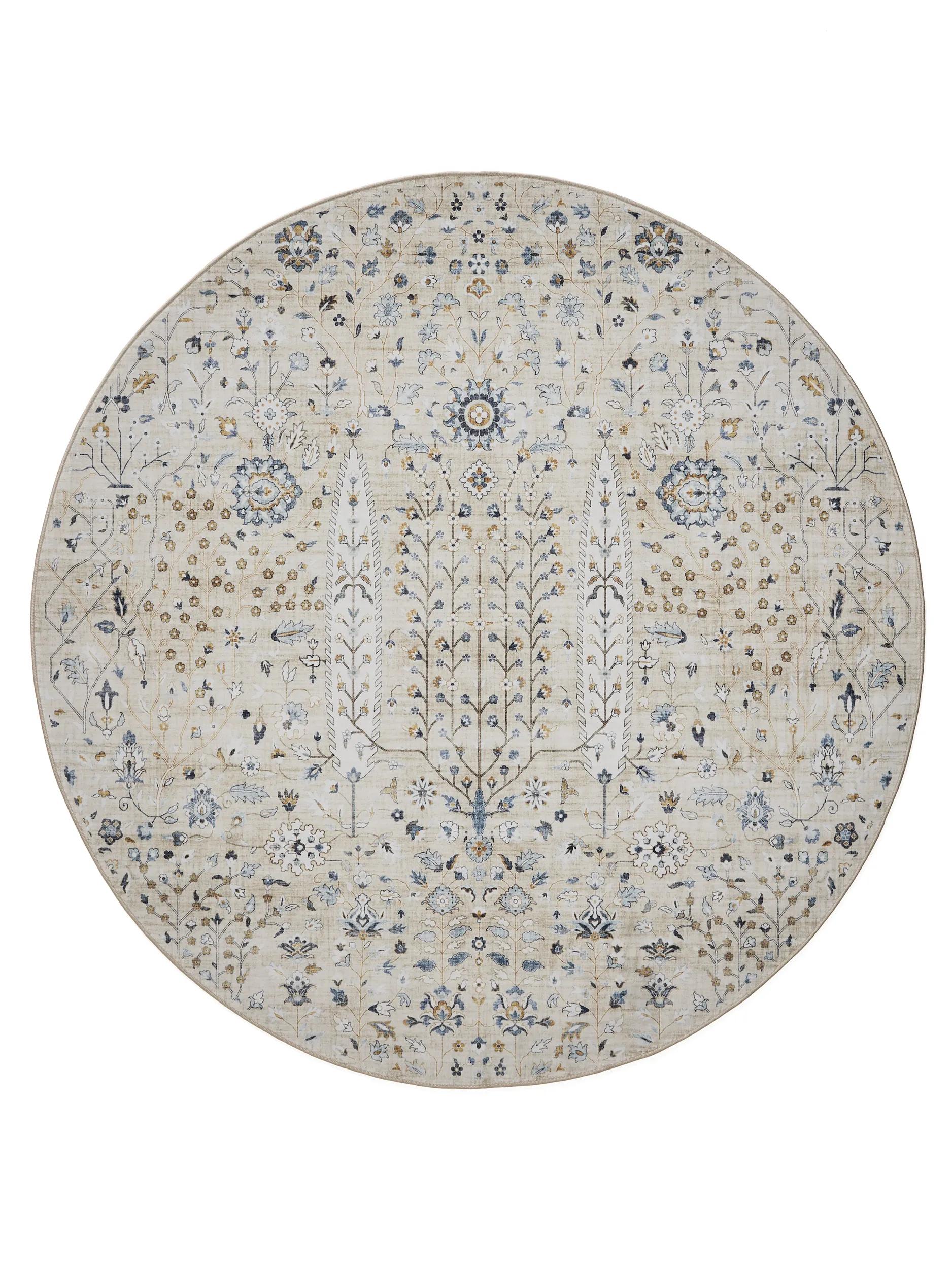 Tapis à fleurs rond beige lavable 120 cm de diamètre