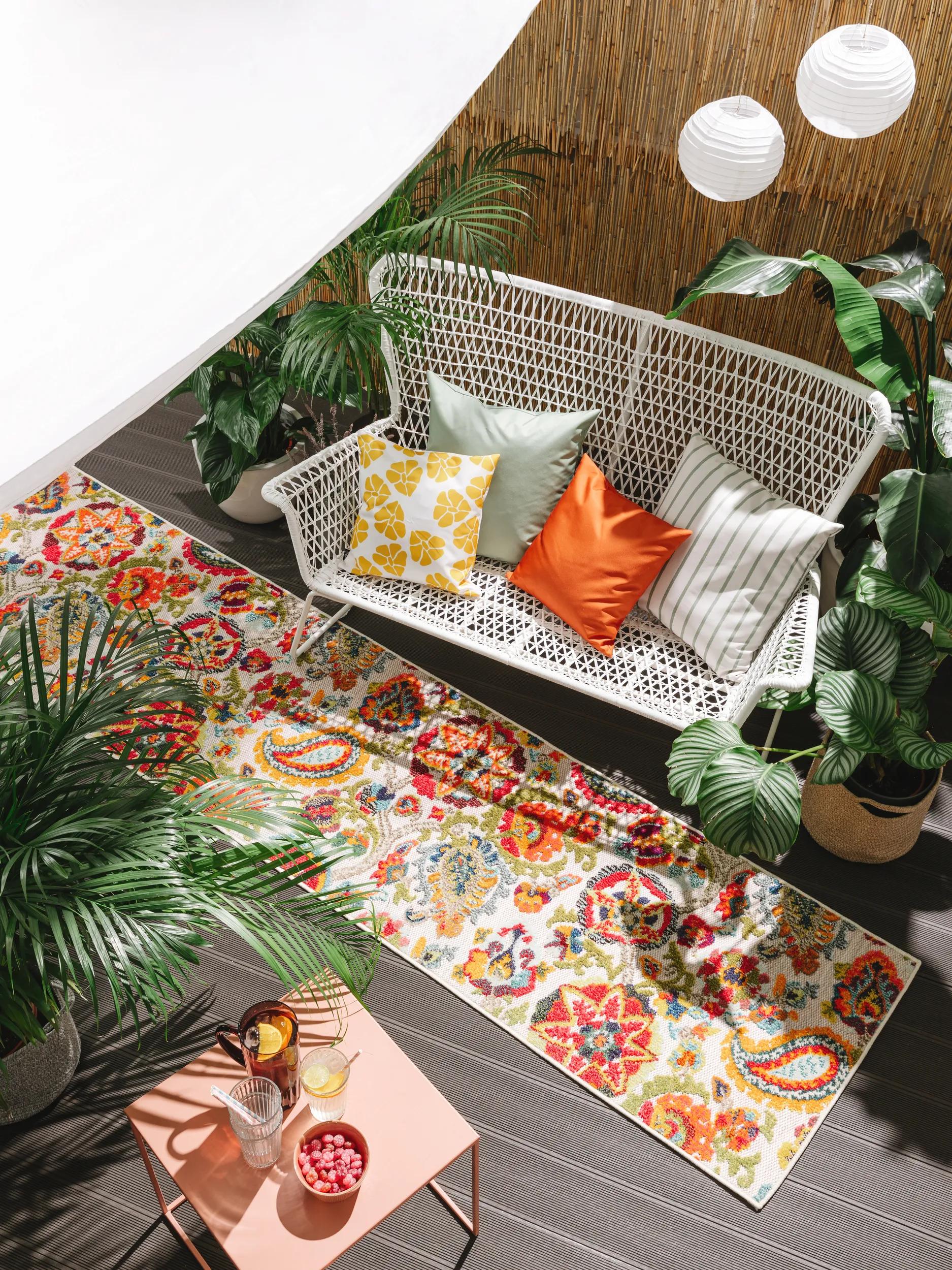 Joyeux et expressif, ce tapis à fleurs au style patchwork multicolore déroule une composition vibrante qui transforme le couloir en véritable allée décorative. Chaque motif floral s’entrelace dans une mosaïque de teintes vives et chaleureuses, rappelant les jardins d’été en pleine floraison. Sur une terrasse, un balcon ou un passage extérieur, il insuffle un charme bohème et coloré, mêlant romantisme et modernité. Le patchwork, fait d’assemblages subtils, crée un rythme visuel vivant où chaque couleur – rose, bleu, vert ou ocre – semble dialoguer avec la lumière du jour. Ce tapis de couloir d’extérieur de 70x240 cm apporte énergie et gaieté tout en structurant l’espace avec élégance. Sa texture plate et régulière met en valeur la richesse des motifs sans alourdir la surface, offrant une touche décorative légère et pleine de caractère. Placé dans un espace de passage, il guide le regard et crée une transition poétique entre les zones de vie. Sous la lumière du soir, les fleurs semblent s’adoucir, comme si le tapis retenait la dernière lueur du soleil. Véritable invitation à la bonne humeur, ce tapis patchwork multicolore marie la fantaisie florale à l’équilibre graphique, pour un décor extérieur à la fois vibrant, harmonieux et plein de vie.