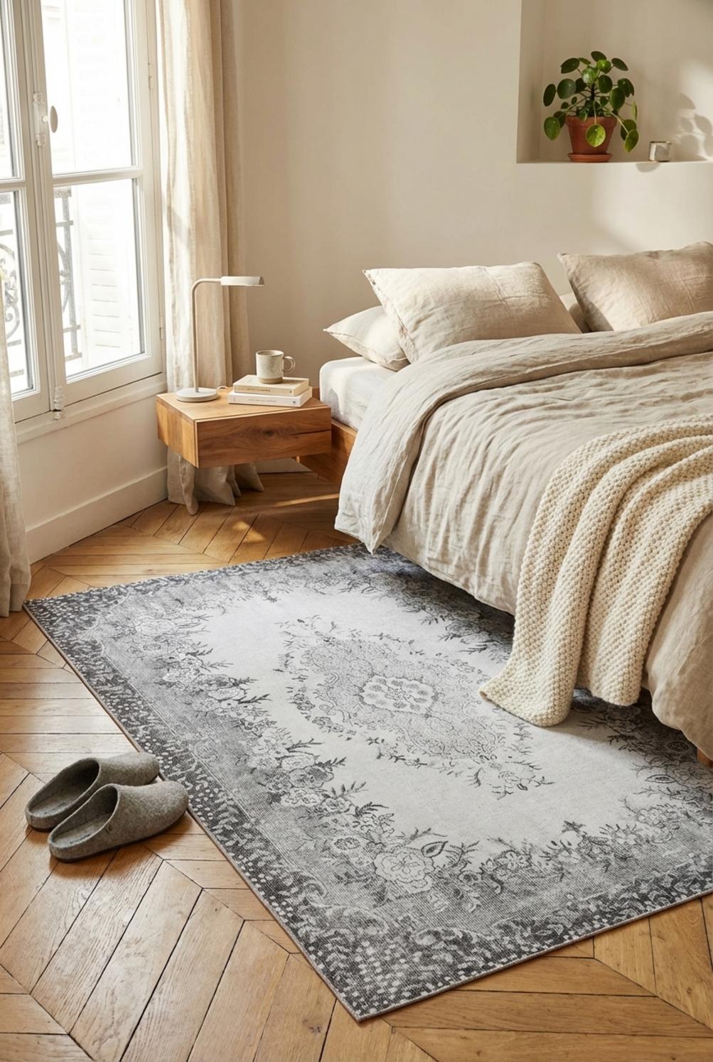 Tapis à fleurs vintage gris lavable 120x170 cm