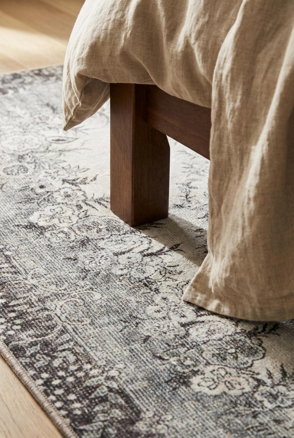 Autrefois animé, le dessin conserve aujourd’hui un effet délavé maîtrisé, avec des nuances subtiles et un léger relief qui joue avec la lumière. La texture travaillée procure une douceur immédiate sous les pieds et une sensation de confort durable, tandis que l’aspect lavable assure une simplicité de vie sans compromettre l’élégance. Le fil andorge des motifs révèle une profondeur visuelle comparable à un papier peint ancien, enrichi par le temps.