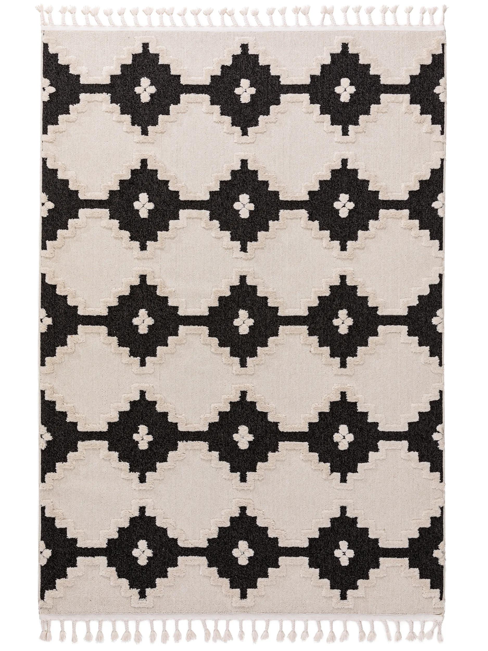 Tapis berbère à franges géométrique beige et noir 80x150 cm