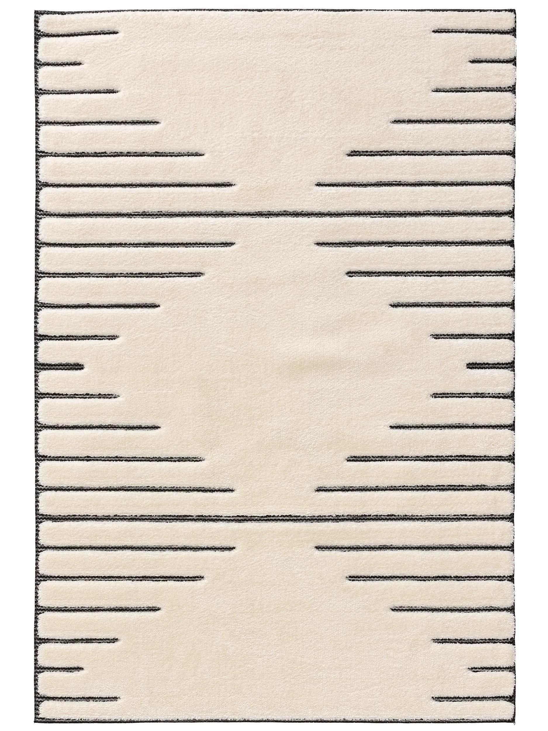 Légèrement texturé, ce tapis installe une ambiance cocooning dans une chambre lumineuse, structure un coin lecture ou vient souligner l'assise d'un canapé. La palette claire laisse la lumière circuler et met en valeur le bois blond, le lin froissé et les coussins feutrés, pour une atmosphère bohème chic tout en retenue.