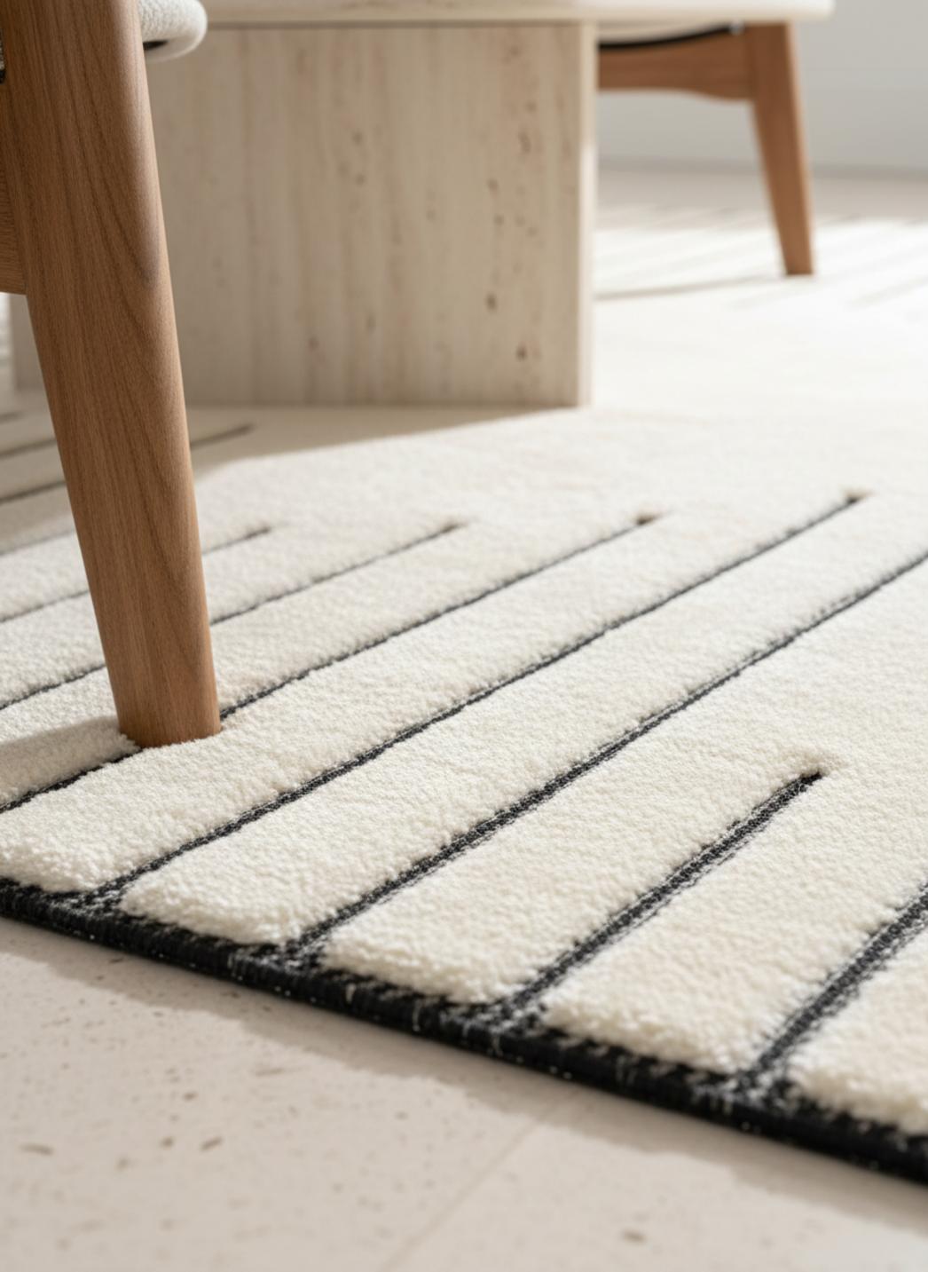 Quand la décoration réclame du caractère, les motifs graphiques jouent leur rôle sans dominer : contraste subtil, rythme des lignes et équilibre visuel transforment le sol en tableau tactile. Le motif en losange se répète avec délicatesse, créant une géométrie apaisante qui structure la pièce sans rompre la douceur.