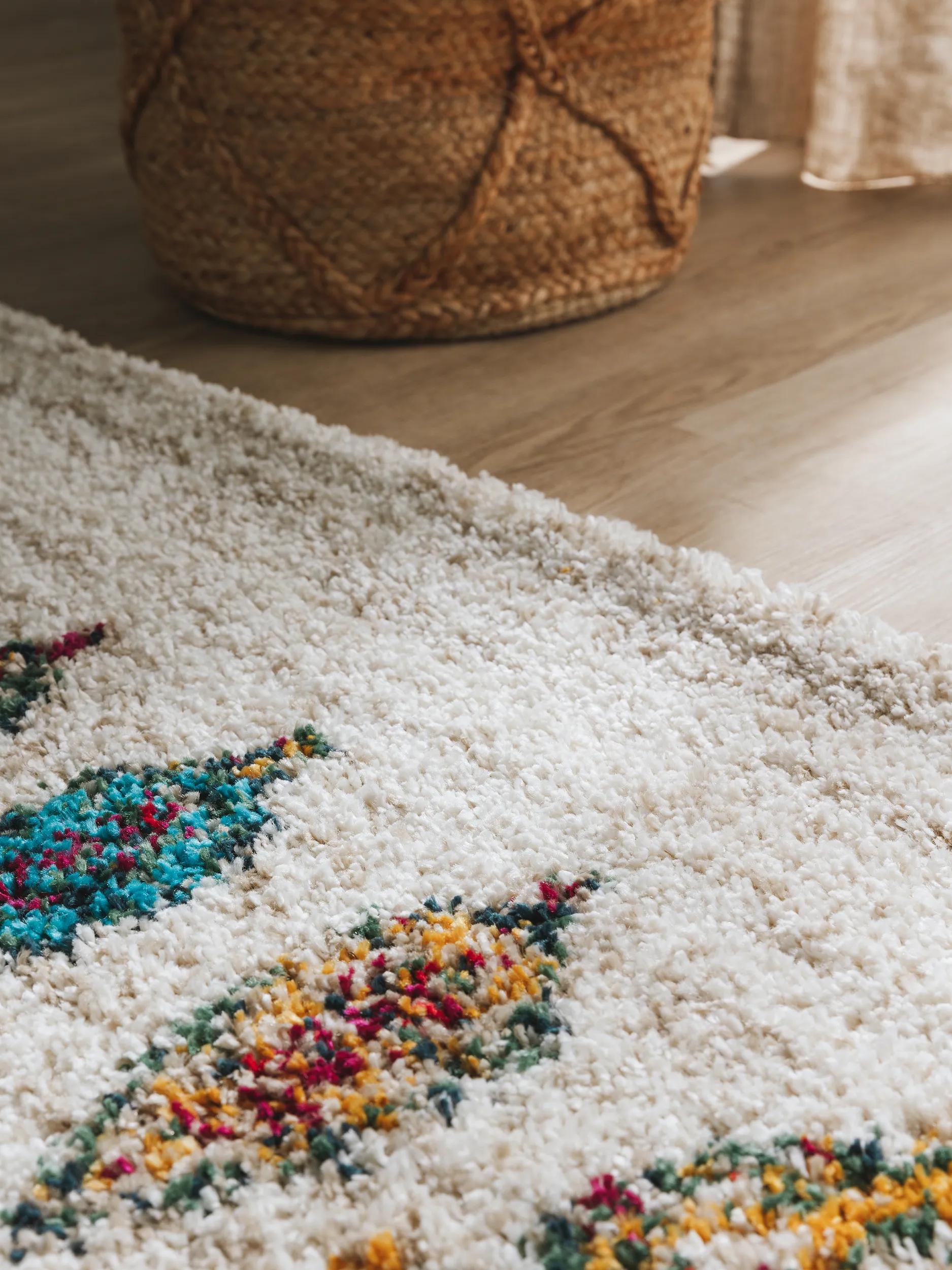 Sous les pas, une douceur enveloppante raconte une rencontre entre tradition et modernité : un tapis inspiré de l'esthétique berbère où une silhouette de feuille se déploie comme un motif délicat sur un fond discret. La texture invite au toucher, semblable à une caresse qui réchauffe la pièce sans jamais alourdir l'ambiance.