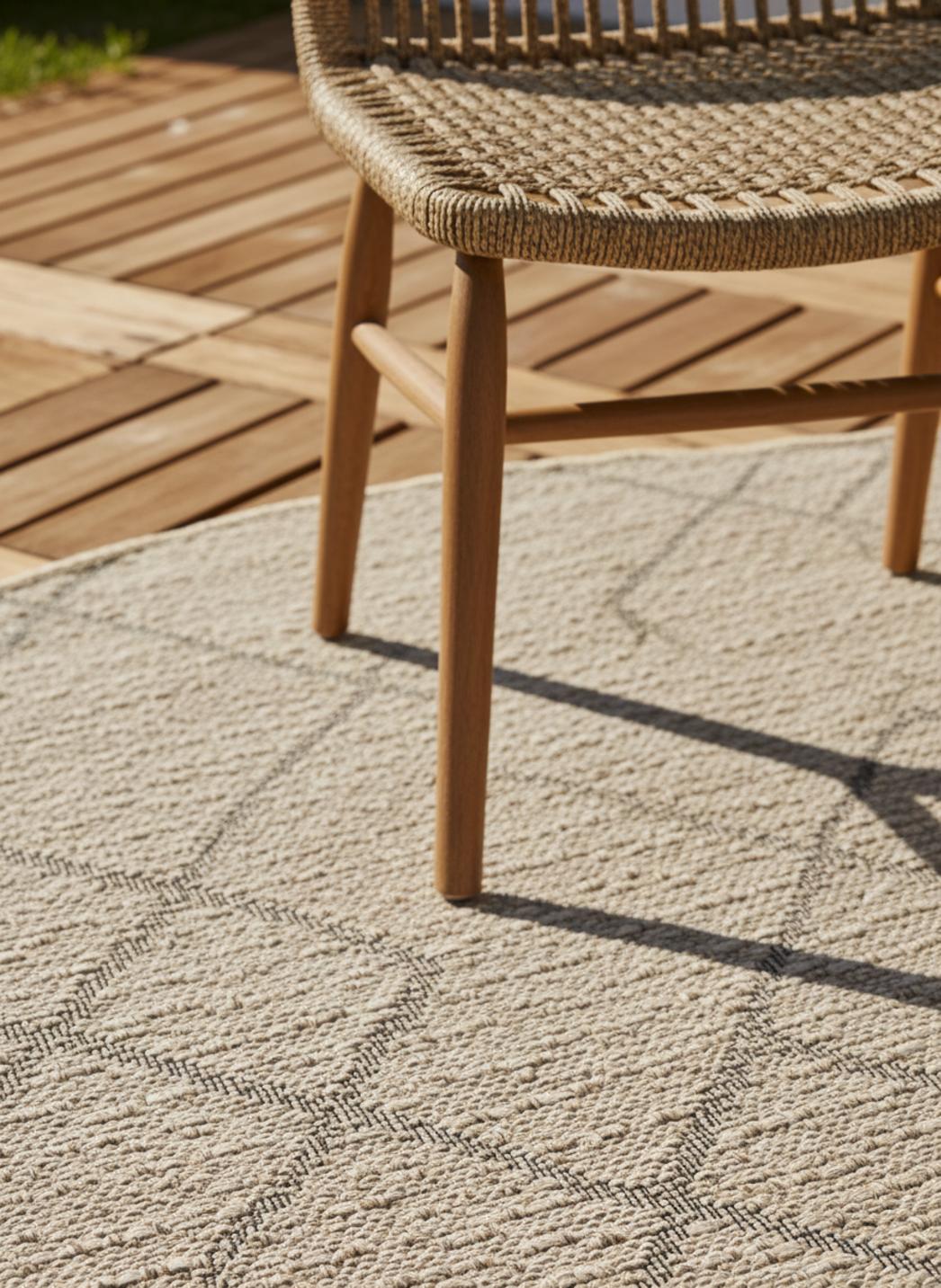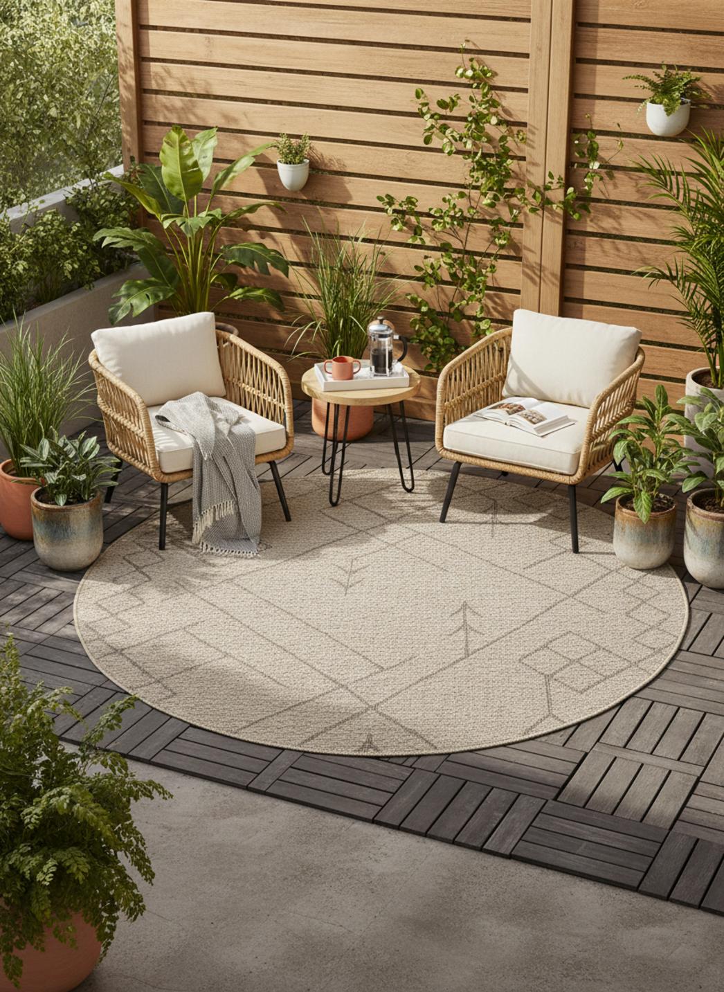 Le charme intemporel du style berbère s’exprime ici dans un tapis rond à la teinte marron naturel, empreint de chaleur et d’authenticité. Son dessin inspiré des tissages traditionnels diffuse une élégance sobre, où chaque détail semble tracé à la main. La forme circulaire adoucit les contours du mobilier et crée un point d’équilibre au cœur de la décoration extérieure. Dans un coin lecture, sous une petite table d’appoint ou au centre d’une terrasse, il apporte une touche artisanale pleine de caractère. Sa couleur terre, profonde et apaisante, s’accorde parfaitement aux matériaux bruts comme le bois, la pierre ou le rotin, tout en réchauffant visuellement l’espace. Sa texture souple capte la lumière du jour, révélant les nuances subtiles de son tissage. Ce modèle s’intègre avec naturel dans la collection de tapis d’extérieur, dédiée à ceux qui aiment vivre dehors avec élégance et confort. Pour prolonger cette atmosphère authentique et enveloppante, découvrez aussi notre sélection de tapis d’extérieur ronds. Un tapis inspiré par la tradition, conçu pour sublimer les moments simples passés en plein air.