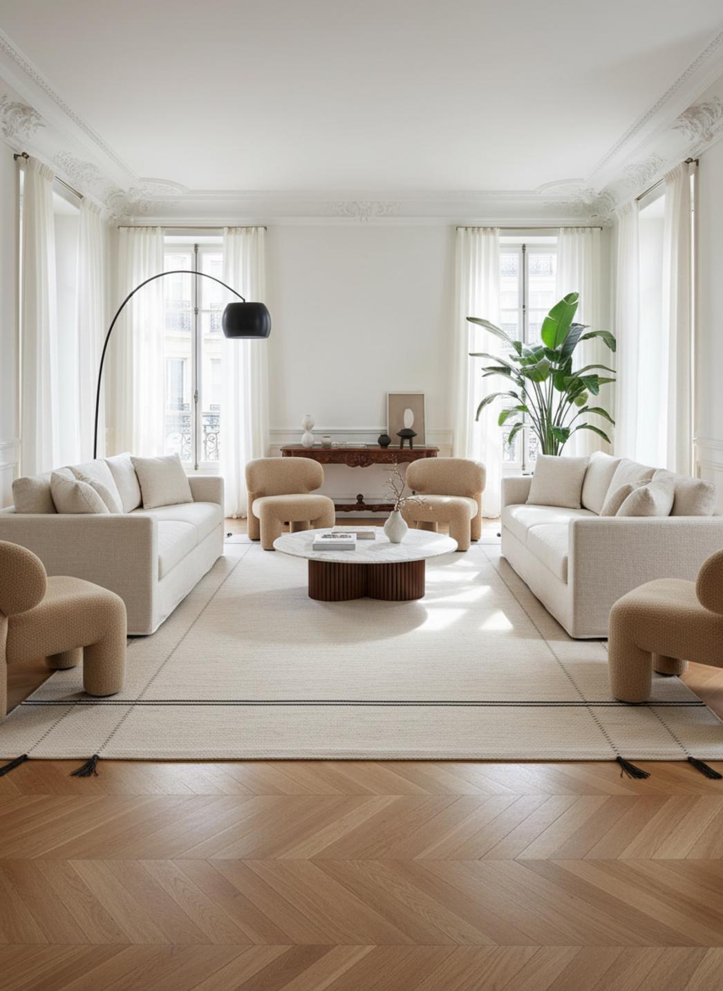 L’entretien reste simple : une aspiration douce suffit pour préserver la tenue et la fraîcheur des fibres, qui gardent leur aspect vivant au fil des saisons. La finition artisanale offre un équilibre entre solidité et douceur, et l’ensemble conserve ce grain naturel qui raconte la présence de la main qui l’a façonné.