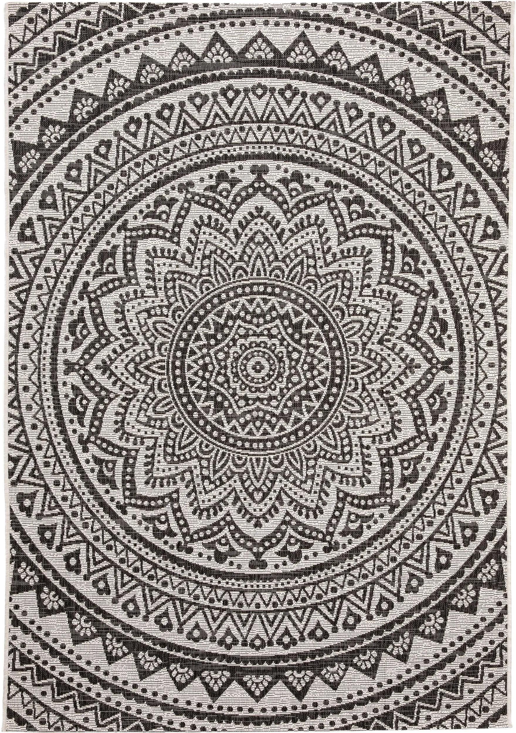 Tapis bohème motif mandala blanc et noir d'intérieur et d'extérieur 240x340 cm
