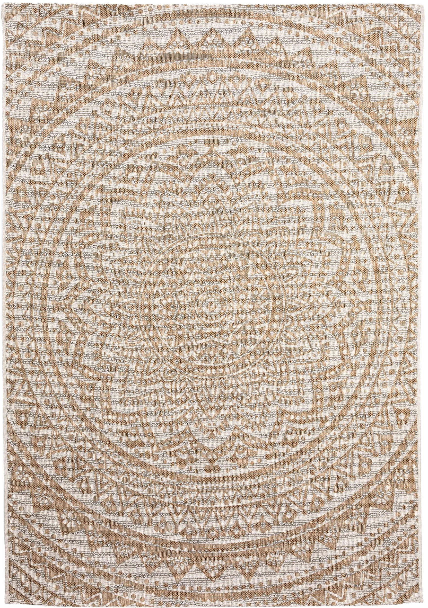 Tapis bohème motif mandala crème et beige d'intérieur et d'extérieur 240x340 cm
