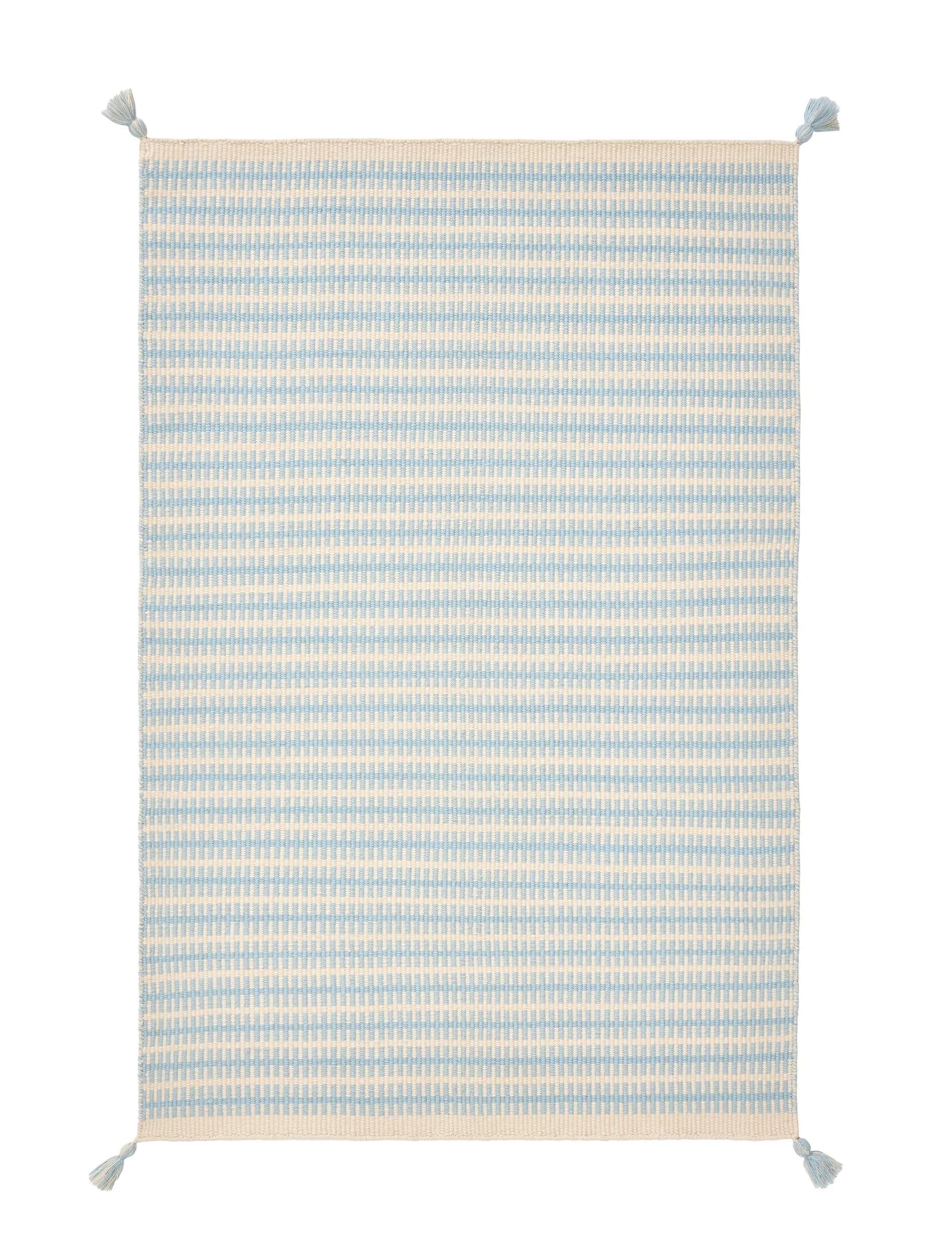 Tapis contemporain à franges enfant bleu et crème en laine 160x230 cm