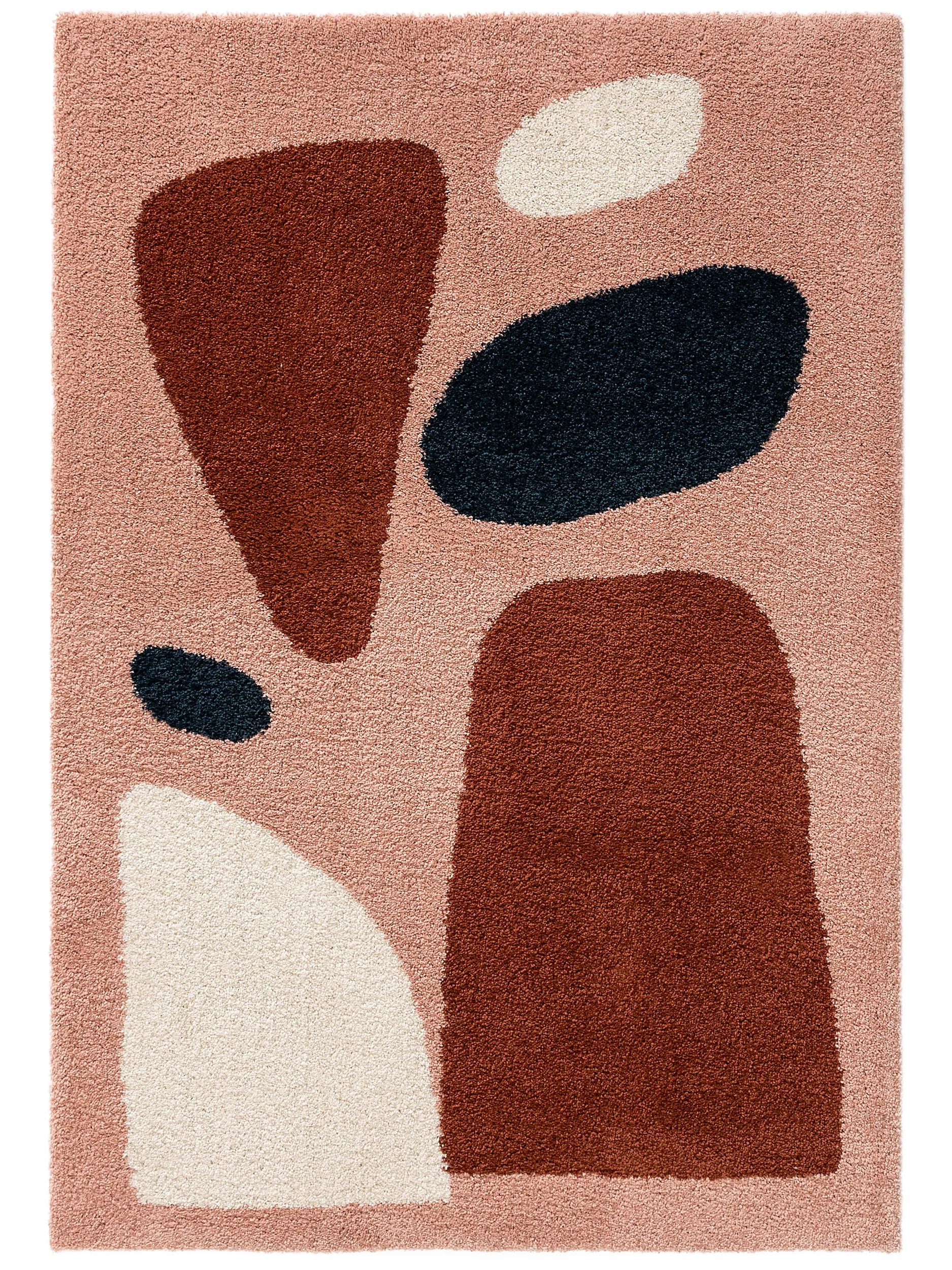 Tapis contemporain abstrait crème et rose 200x290 cm