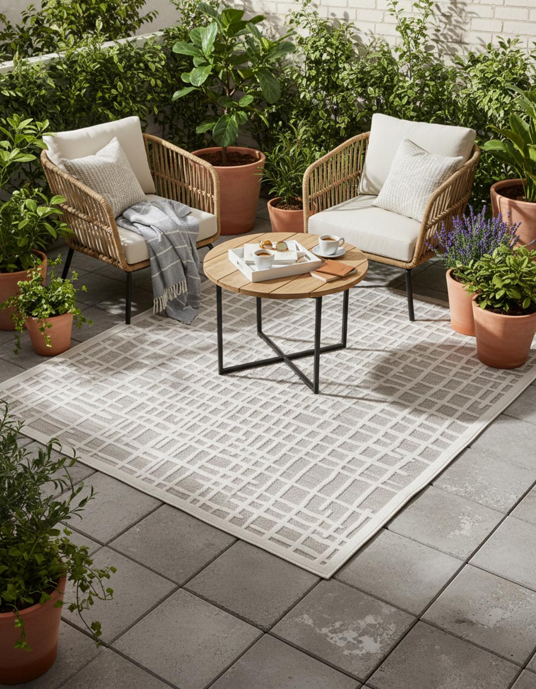 Tapis contemporain abstrait greige d'intérieur et d'extérieur 80x150 cm