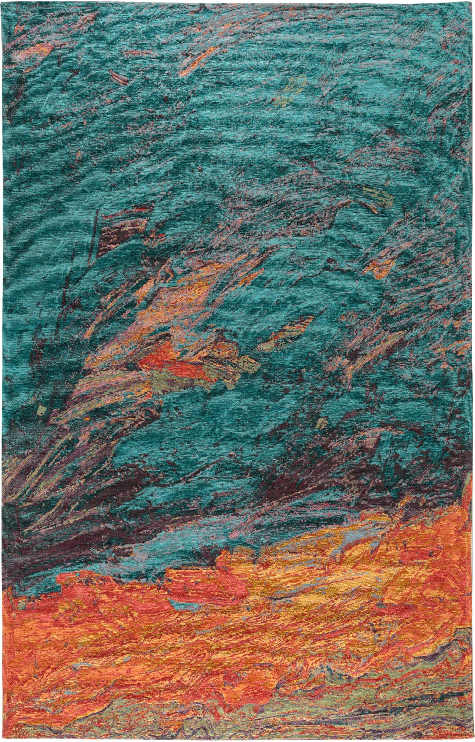 Tapis contemporain design bleu canard et orange 195x285 cm