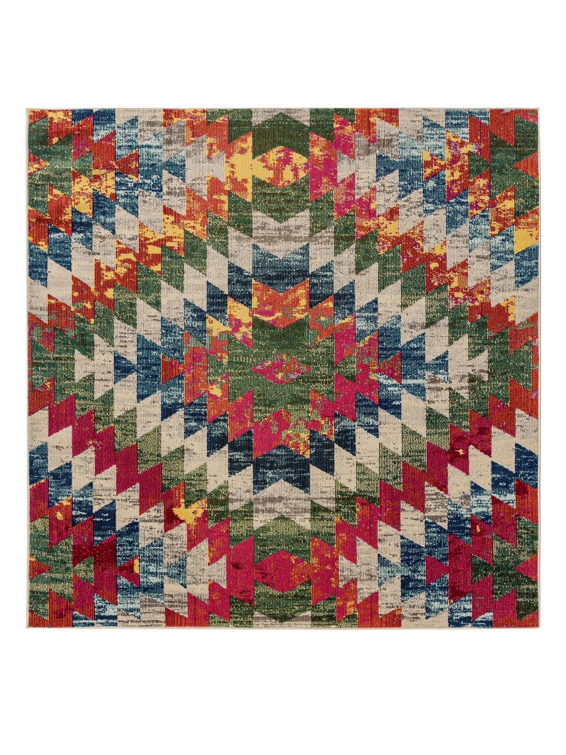 Tapis contemporain ethnique carré multicolore 200x200 cm