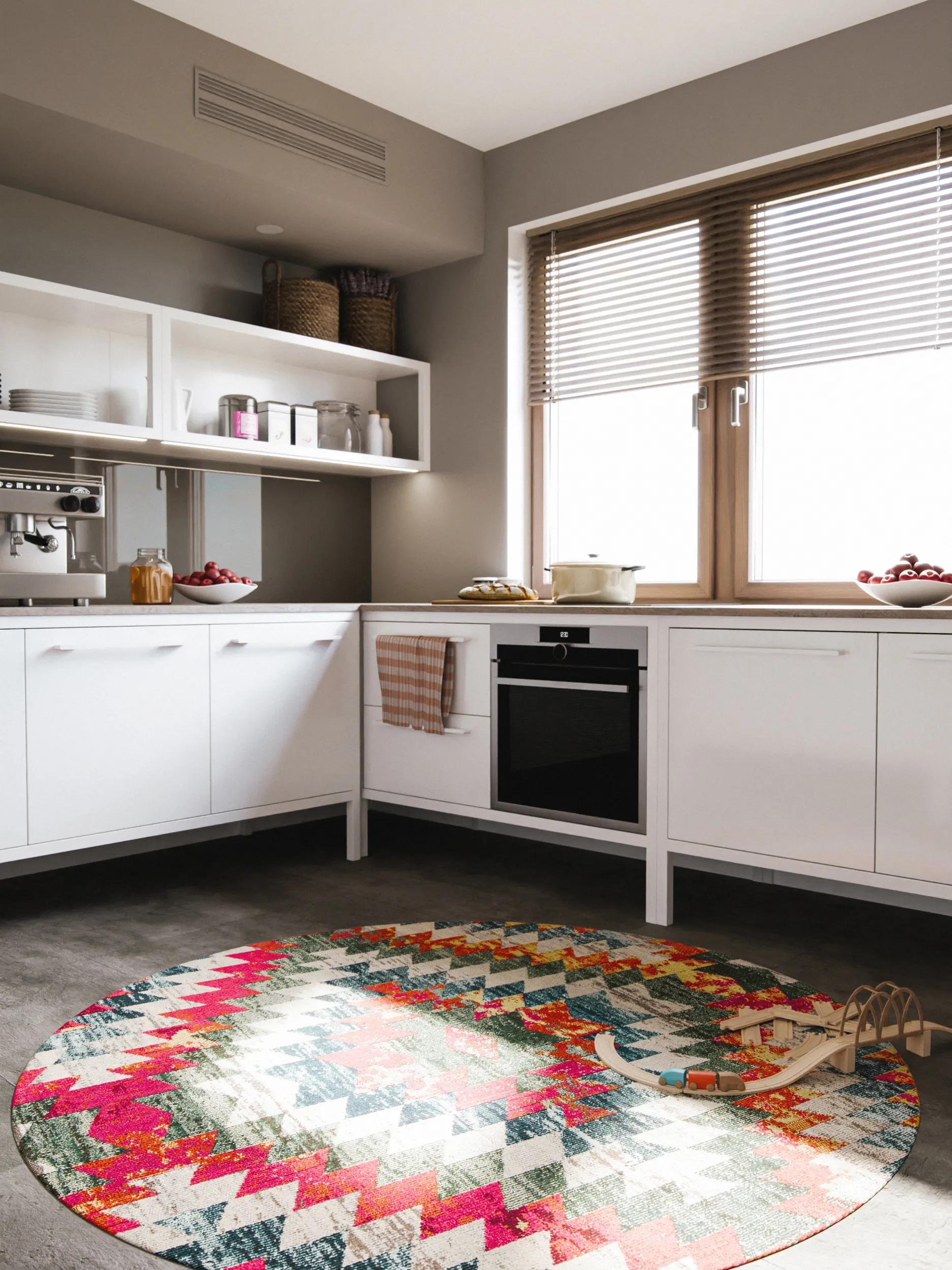 Tapis contemporain ethnique rond multicolore 160 cm de diamètre