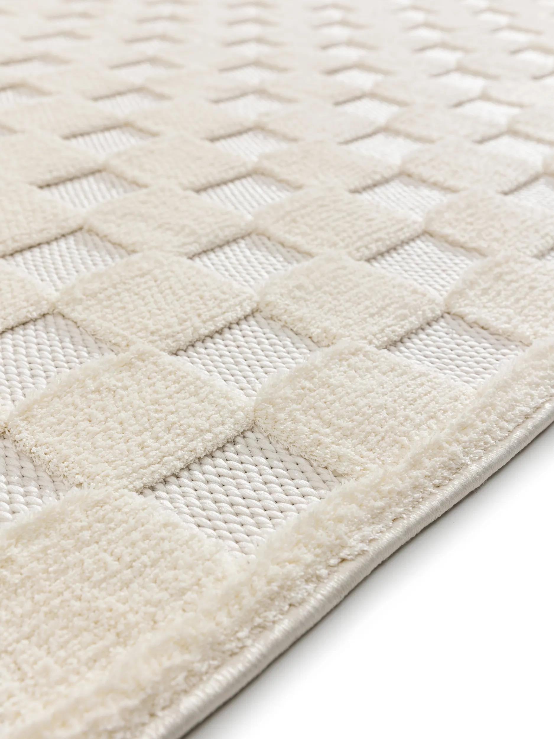 La teinte principale, un beige lacté proche du lin, installe une mémoire chaleureuse sans jamais devenir envahissante. Le ton crème agit comme un écrin clair où la lumière vient jouer, soulignant les reliefs et les ombres du tissage. Cette nuance se prête aussi bien à un séjour contemporain qu’à une chambre d’enfant, réinterprétée avec sobriété pour conserver une énergie lumineuse et douce.
