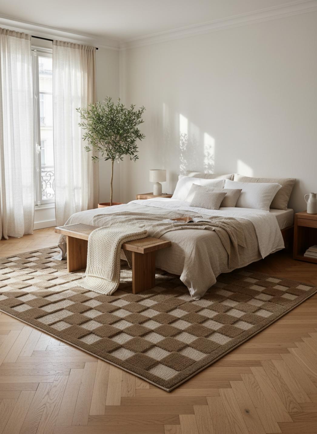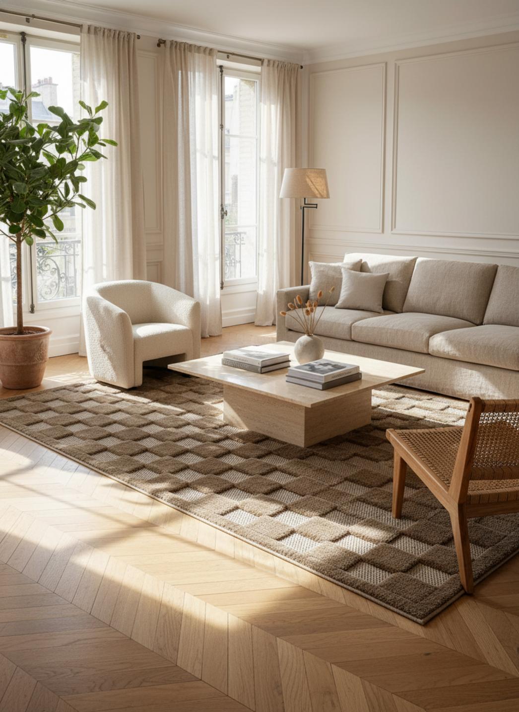 Enfin, l’alliance entre rigueur formelle et douceur tactile fait de ce tapis une pièce de caractère qui apaise et organise. Pour découvrir d’autres créations modernes mêlant équilibre visuel et douceur contemporaine, explorez également notre collection complète de tapis contemporains.