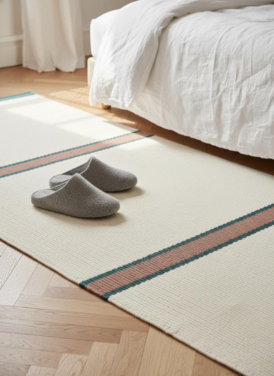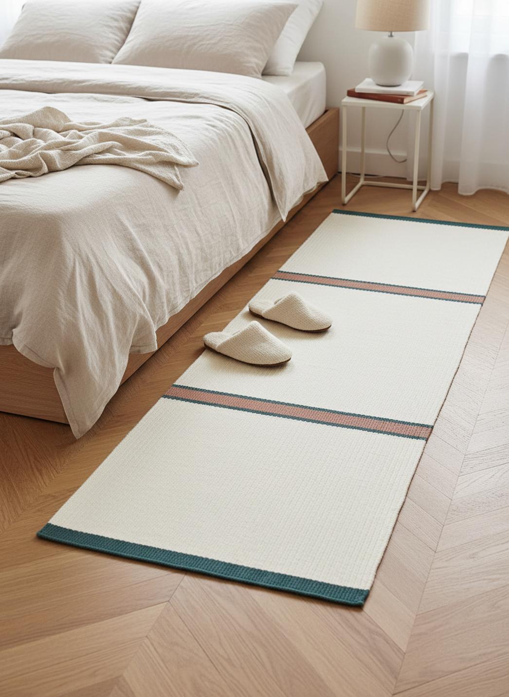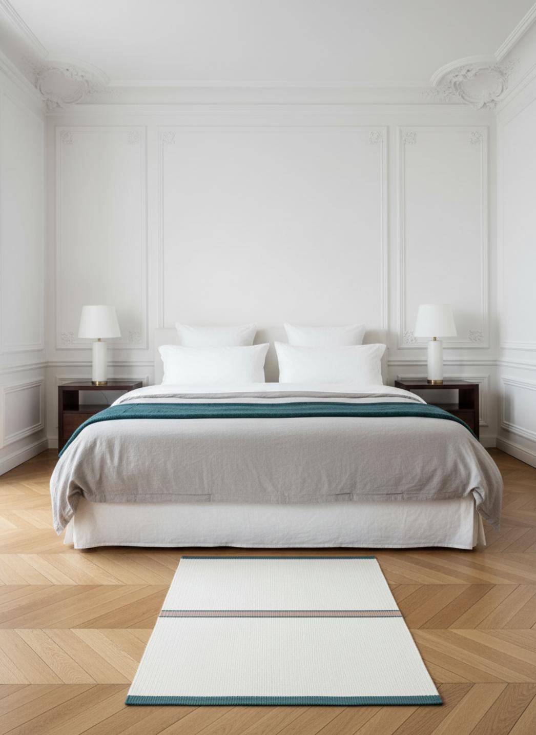 Pensée comme une véritable descente de lit, la longueur épouse le chemin du mobilier et souligne le lit avec délicatesse. Le format 80x250 cm crée un effet d'élancement maîtrisé, parfait pour allonger une chambre ou pour définir un couloir intérieur en conservant une sensation de cocon.