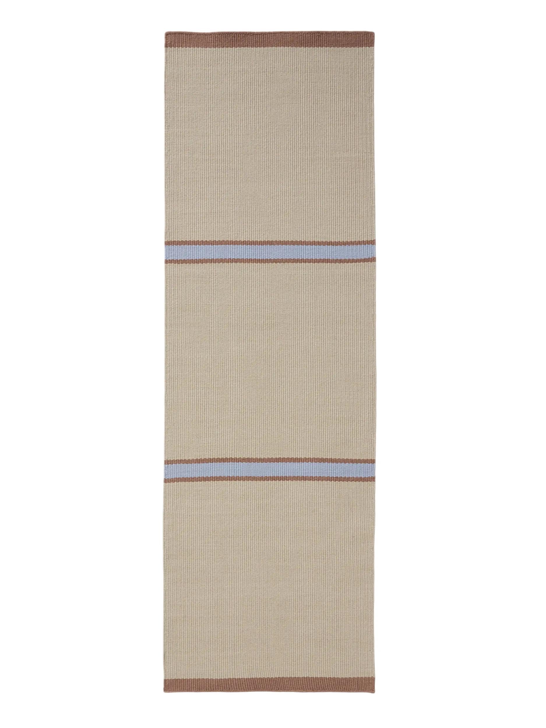 Tapis contemporain motif à bandes descente de lit marron et bleu en laine 70x200 cm