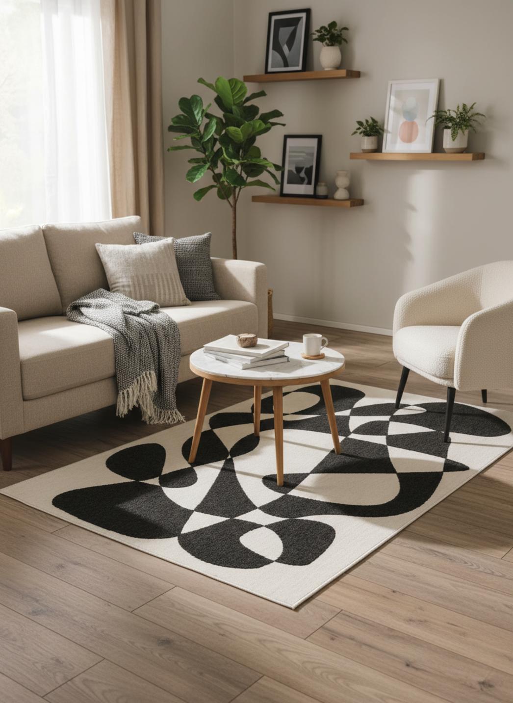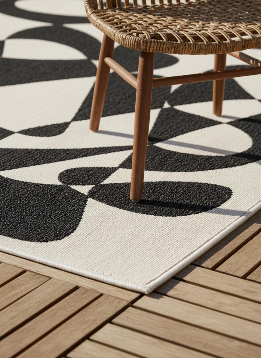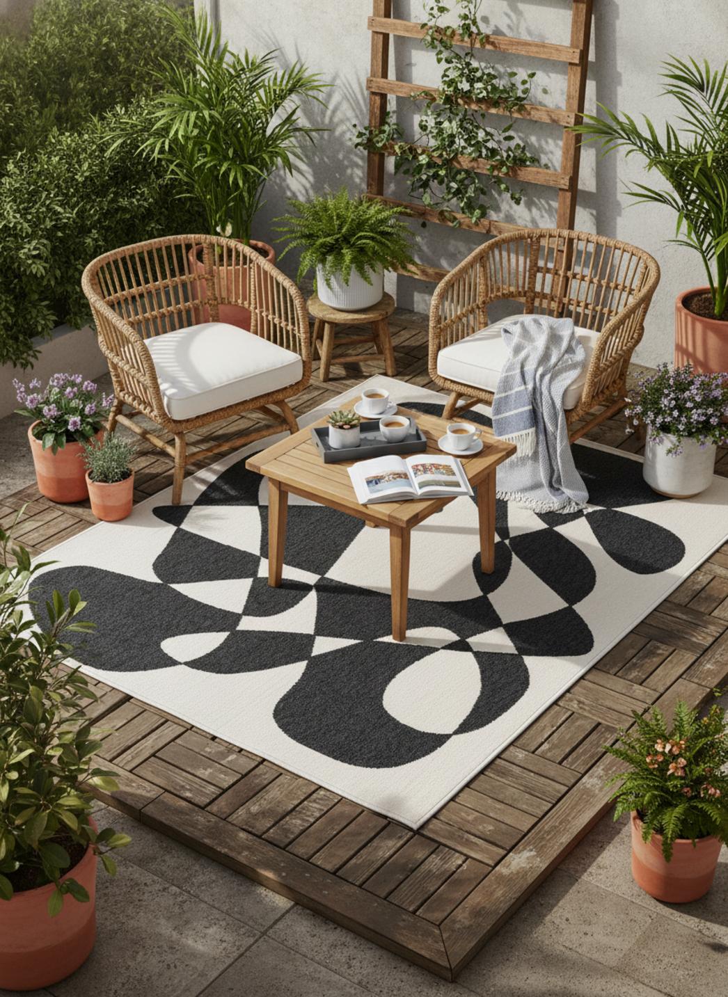 Graphique et raffiné, ce tapis au style contemporain séduit par son motif abstrait et le contraste saisissant de ses tons noir et blanc. Dans un format de 80x150 cm, il trouve parfaitement sa place sur un balcon, une terrasse ou un petit patio, apportant une touche moderne et sophistiquée à l’espace extérieur. Ses formes abstraites, à la fois fluides et structurées, créent un effet visuel captivant qui anime le sol sans l’alourdir. Le noir donne de la profondeur et de la personnalité, tandis que le blanc apporte lumière et équilibre, formant un duo intemporel et élégant. Ce tapis s’accorde aisément avec un mobilier épuré, qu’il soit en bois clair, en métal ou en rotin, et met en valeur les ambiances minimalistes comme les décorations plus artistiques. Placé sous une petite table ou dans un coin détente, il structure l’espace avec justesse et modernité. Véritable pièce de caractère, il insuffle aux extérieurs une allure urbaine et chic, où design et sobriété se rejoignent en parfaite harmonie.