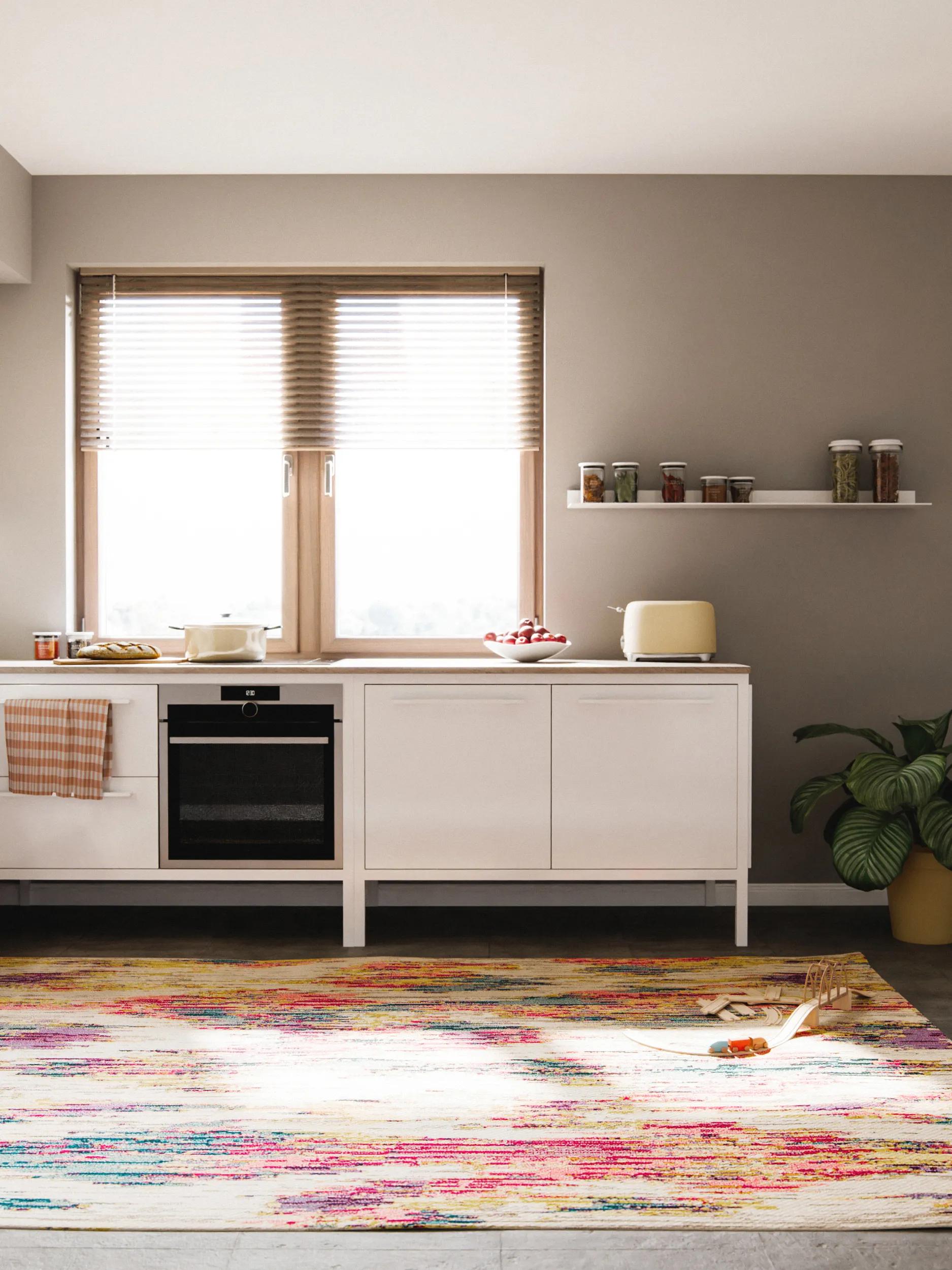 Pensé pour structurer un intérieur contemporain, le format généreux de 200x290 cm souligne un canapé, accompagne un lit ou crée une zone de conversation, allonge la perspective d’un couloir ou définit un coin lecture, tout en restant léger visuellement grâce à ses nuances lumineuses.