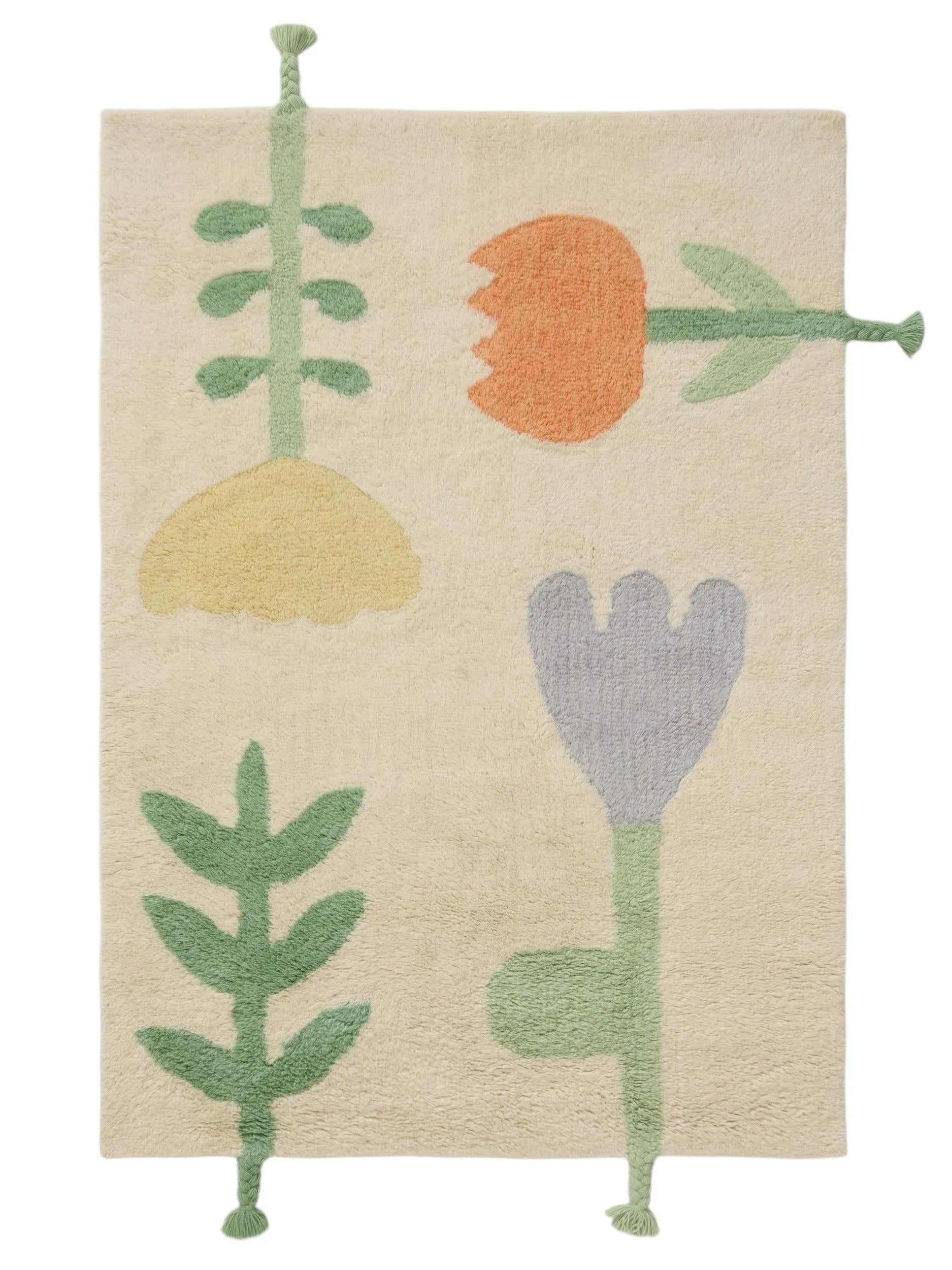 Tapis contemporain motif fleurs enfant multicolore en laine 80x120 cm