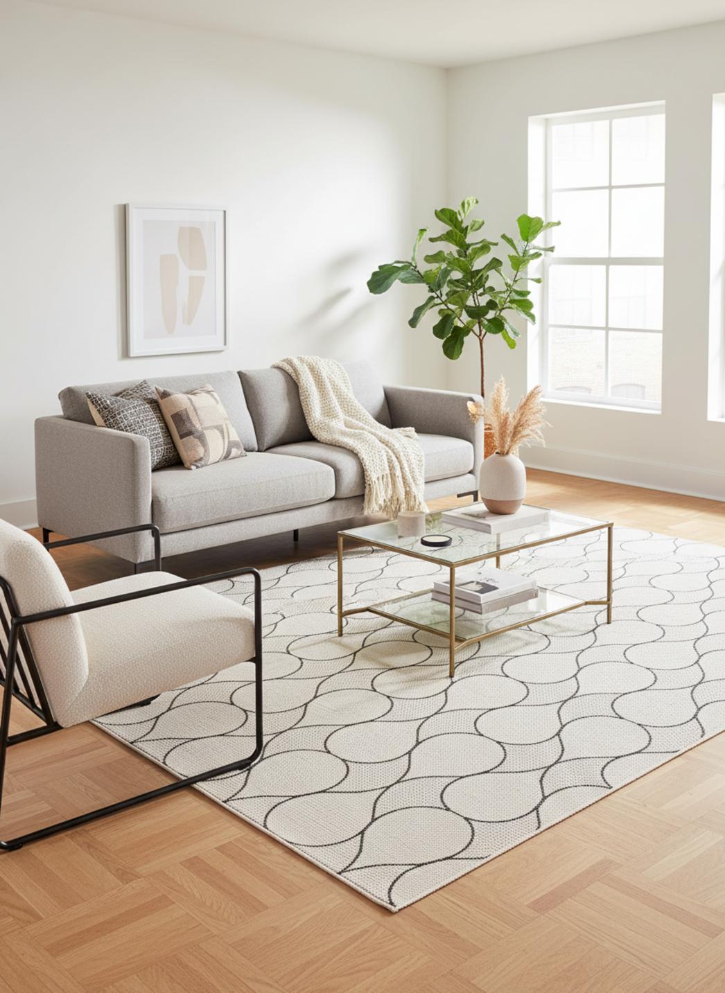 Les courbes légères de ce tapis contemporain à motif goutte blanc et noir dessinent une harmonie parfaite entre douceur et contraste. Dans son format de 120x170 cm, il s’adapte aisément à une terrasse moyenne, un balcon ou un espace détente en plein air, apportant une touche graphique subtile. Le blanc diffuse la lumière et agrandit visuellement l’espace, tandis que le noir en souligne les formes avec élégance, créant un dialogue visuel à la fois moderne et apaisant. Ce tapis d’extérieur capte le regard sans jamais dominer, jouant sur la fluidité de ses motifs pour structurer l’espace avec raffinement. Il s’accorde aussi bien avec un mobilier naturel en rotin ou en bois clair qu’avec des éléments plus contemporains en métal. Chaque rayon de soleil y révèle un équilibre parfait entre contraste et légèreté, transformant la terrasse en un lieu de détente élégant, clair et accueillant.