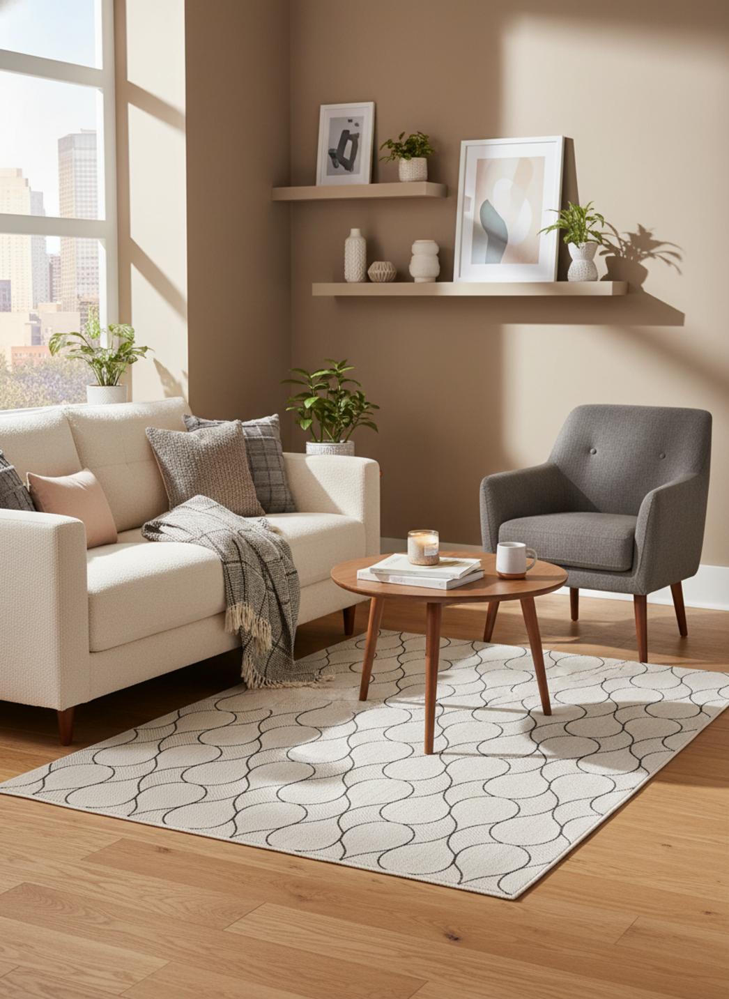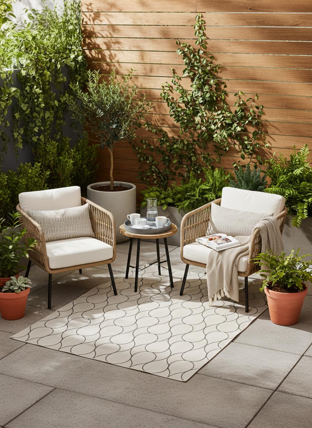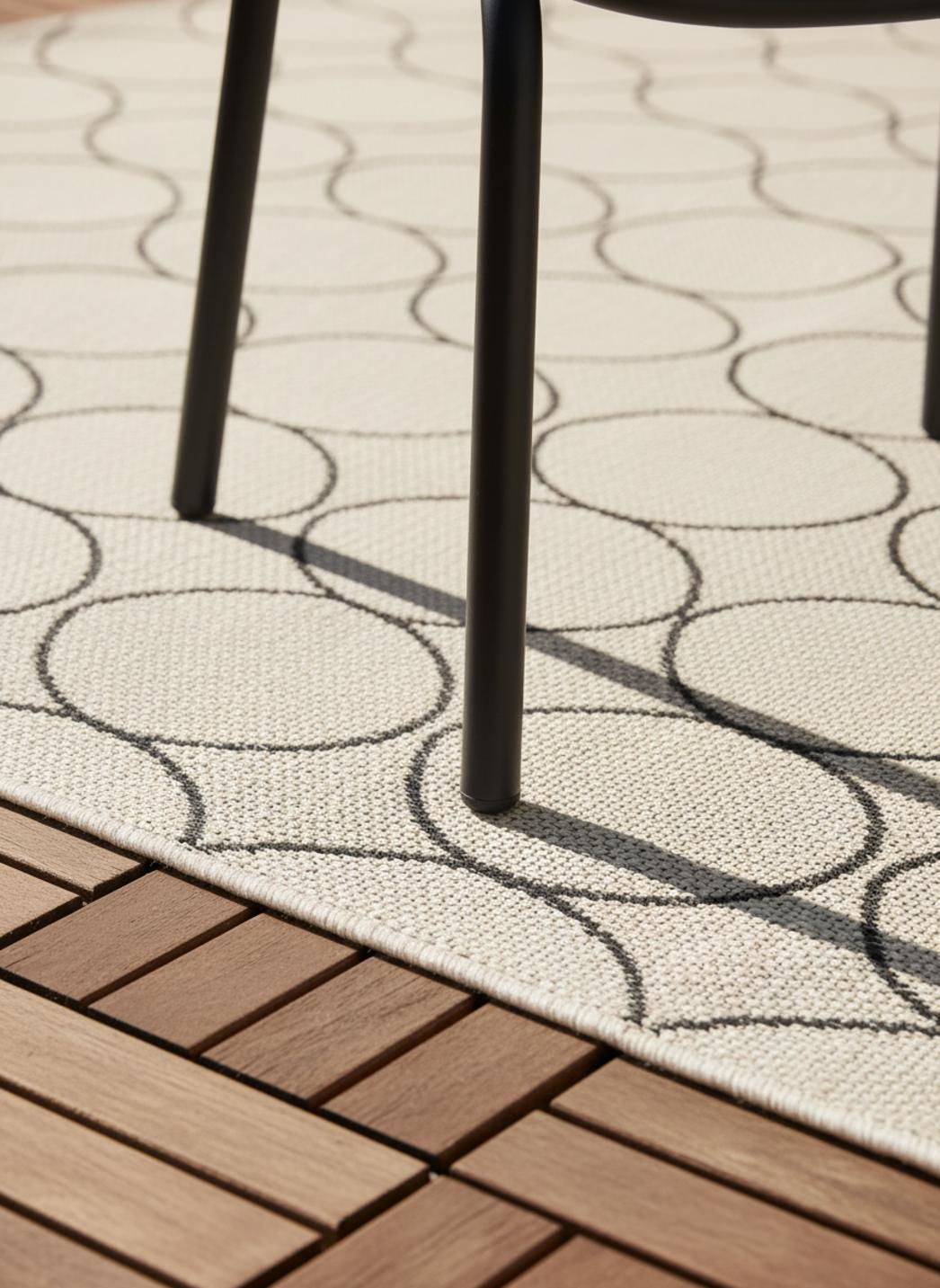 Graphique et raffiné, ce tapis contemporain au motif goutte blanc et noir joue sur la dualité parfaite entre lumière et contraste. Ses formes arrondies, à la fois douces et dynamiques, apportent un rythme visuel subtil qui capte immédiatement le regard. Sur un balcon moderne, une terrasse minimaliste ou près d’un coin détente, il devient l’élément qui structure l’espace avec élégance. Le blanc illumine, le noir ancre, créant un équilibre visuel qui évoque la pureté du design contemporain. Ce tapis d’extérieur de 80x150 cm, idéal pour les espaces restreints, s’impose comme une pièce à la fois fonctionnelle et décorative. Sa composition visuelle évoque le mouvement de l’eau, une fluidité graphique qui adoucit les lignes angulaires du mobilier et apporte une touche d’harmonie. Associé à des matériaux naturels comme le bois clair ou le rotin, il crée un contraste chaleureux ; marié à des surfaces métalliques ou bétonnées, il accentue la modernité du lieu. Sous la lumière du jour, les gouttes se découpent avec précision, tandis qu’au crépuscule, leurs contours se fondent dans une ambiance feutrée. Élégant et intemporel, ce tapis blanc et noir incarne l’essence du design contemporain : la simplicité expressive, la beauté du contraste et la poésie des formes épurées.