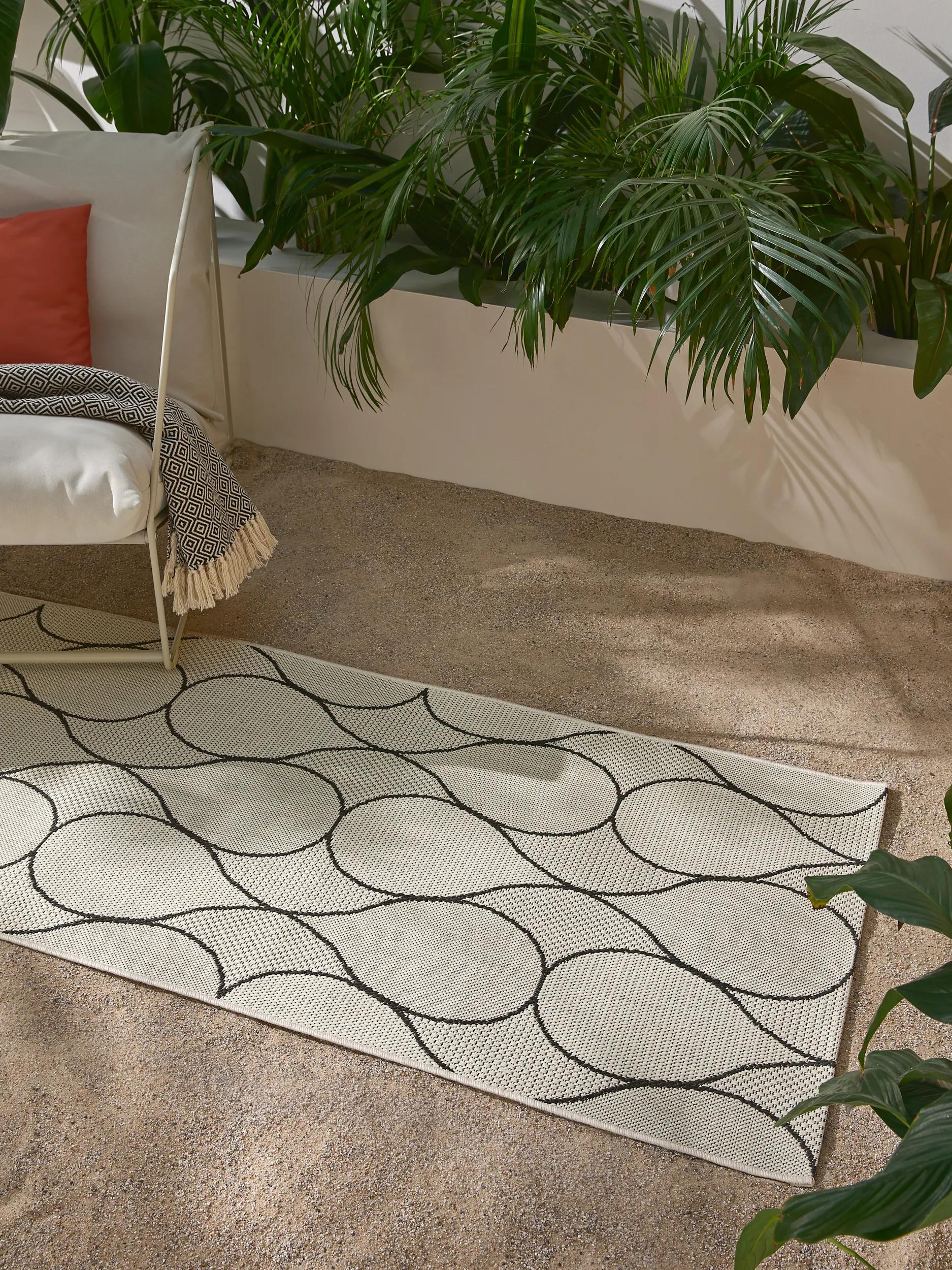 Ce tapis contemporain de couloir au motif goutte blanc et noir impose un style graphique audacieux tout en conservant une élégance sobre. Sur 80x240 cm, il s’étire avec légèreté le long d’une terrasse, d’un balcon ou d’un passage extérieur, apportant rythme et modernité à l’espace. Le contraste entre le blanc lumineux et le noir profond crée un jeu visuel captivant, où les formes en goutte semblent se mouvoir au gré de la lumière. Le dessin, à la fois fluide et structuré, adoucit la rigueur du noir par la rondeur des motifs. Ce tapis de couloir d’intérieur et d’extérieur incarne une sophistication contemporaine, parfaite pour souligner les lignes architecturales d’un extérieur design tout en diffusant une atmosphère équilibrée, graphique et raffinée.