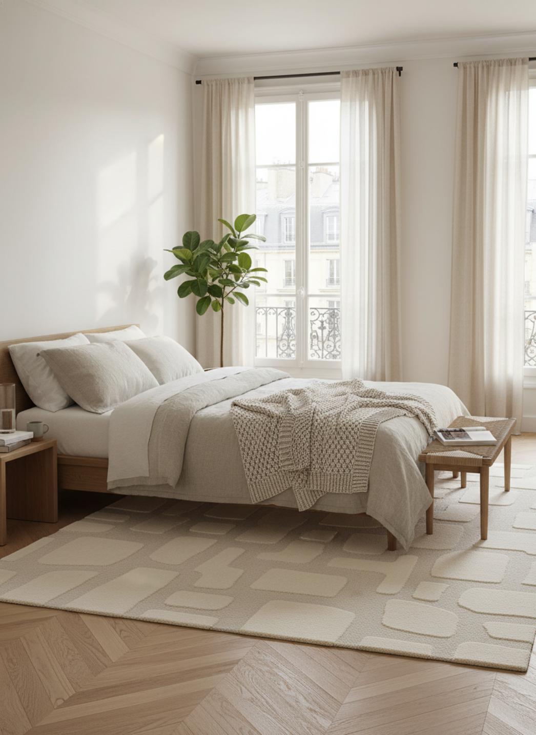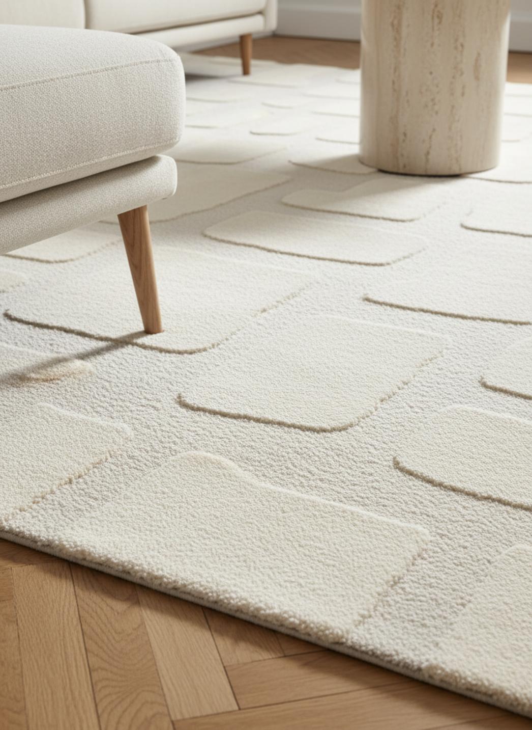 Pour découvrir d’autres créations modernes mêlant équilibre visuel et douceur contemporaine, explorez également notre collection complète de tapis contemporains.