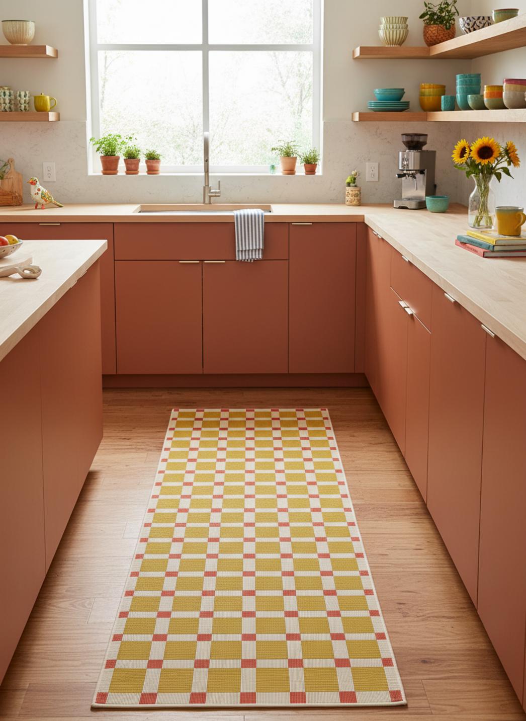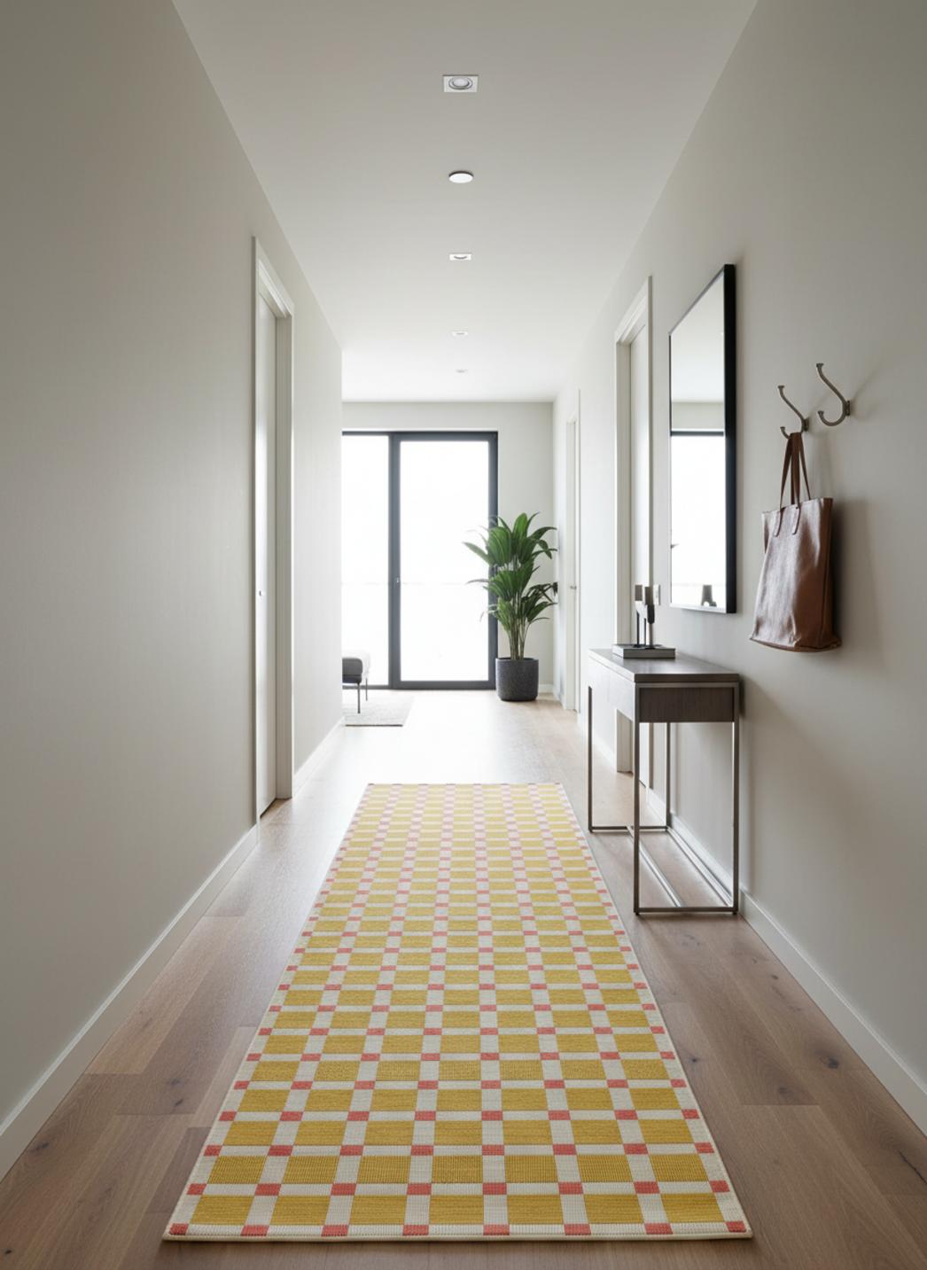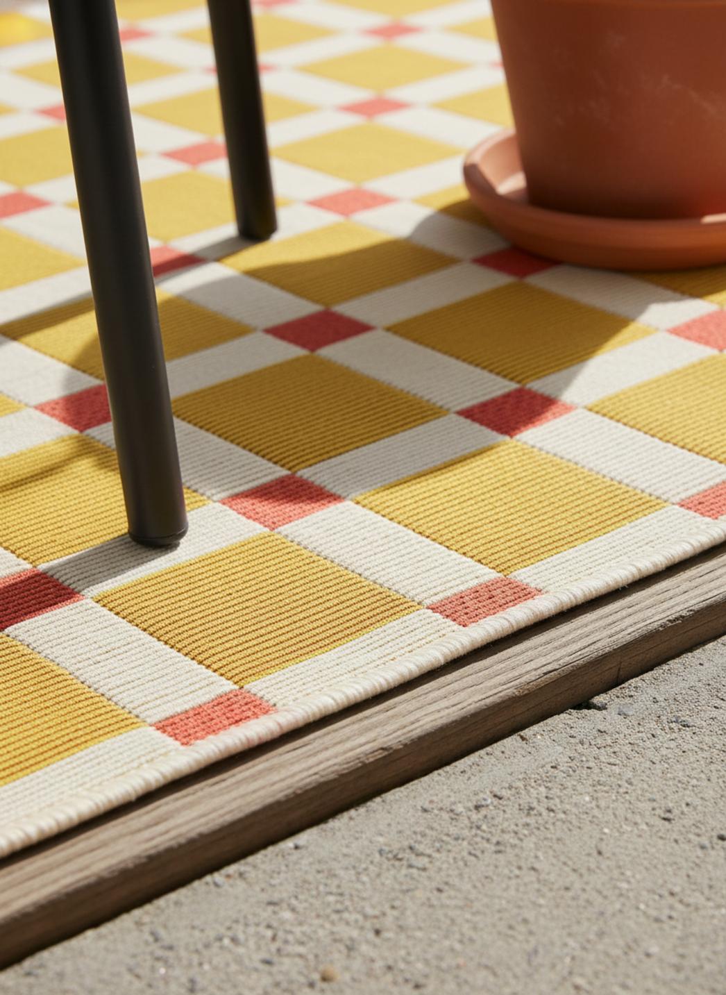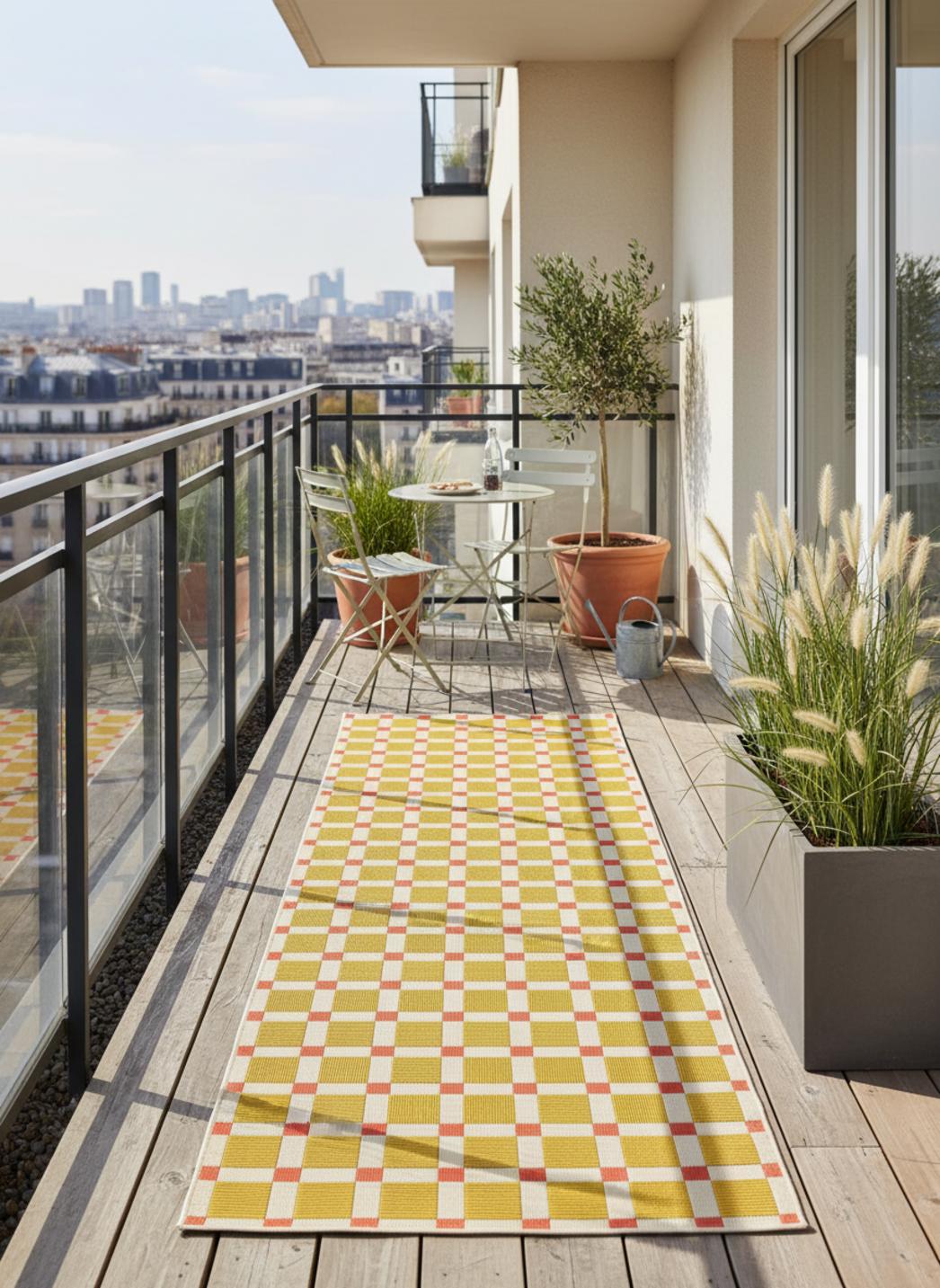 Le tapis contemporain quadrillé de couloir jaune et rouge insuffle une énergie vibrante et moderne dans les espaces de passage. Ses lignes régulières et rythmées structurent le sol tout en jouant avec la lumière, offrant un équilibre entre intensité et élégance. Le jaune, lumineux et ensoleillé, se marie à la profondeur du rouge pour créer une ambiance dynamique et accueillante. En format 80x250 cm, il accompagne la circulation avec fluidité, reliant les pièces de vie ou prolongeant une ouverture sur l’extérieur. Ce modèle traduit l’esprit graphique et coloré de la collection de tapis d’extérieur, où le dessin devient un élément d’expression décorative. Sa texture tissée à plat capte les reflets du jour et révèle la richesse des teintes dans un jeu visuel vivant. On retrouve cette même vitalité dans la sélection de tapis de balcon, idéale pour dynamiser un espace étroit avec style. Un tapis qui fait du passage un lieu lumineux et plein de caractère.
