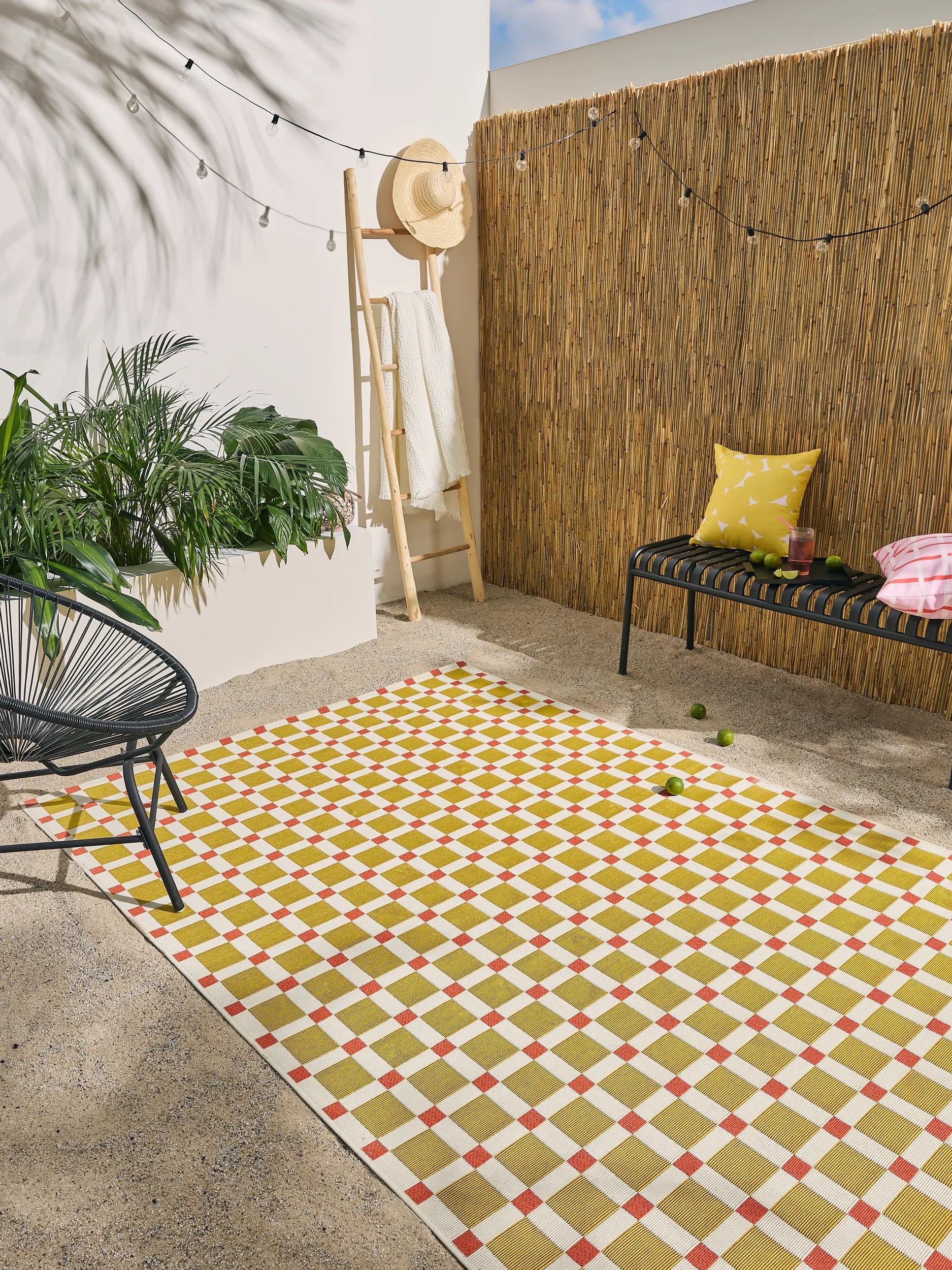Tapis contemporain quadrillé jaune et rouge d'intérieur et d'extérieur 120x180 cm