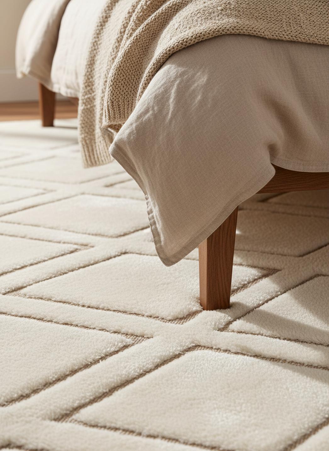 La matière texturée offre une sensation enveloppante sous les pas, douce et légèrement moelleuse sans être excessive, idéale pour des moments de pause au salon ou pour entourer un lit d’une étreinte feutrée. Pensé pour accueillir pieds nus et après-midis de lecture, il transforme la pièce en refuge chaleureux tout en gardant une allure contemporaine.