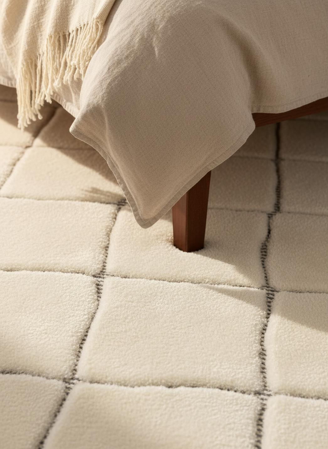 Les nuances chaudes et neutres conviennent aussi bien à un salon bohème qu’à une chambre cocooning, tandis que les motifs noirs ou gris ancrent la composition. Sous les pieds, la marche devient une caresse ; la densité du tissage isole et protège tout en restant aérienne. L’effet général est celui d’un refuge contemporain, une invitation à ralentir et à savourer l’instant.