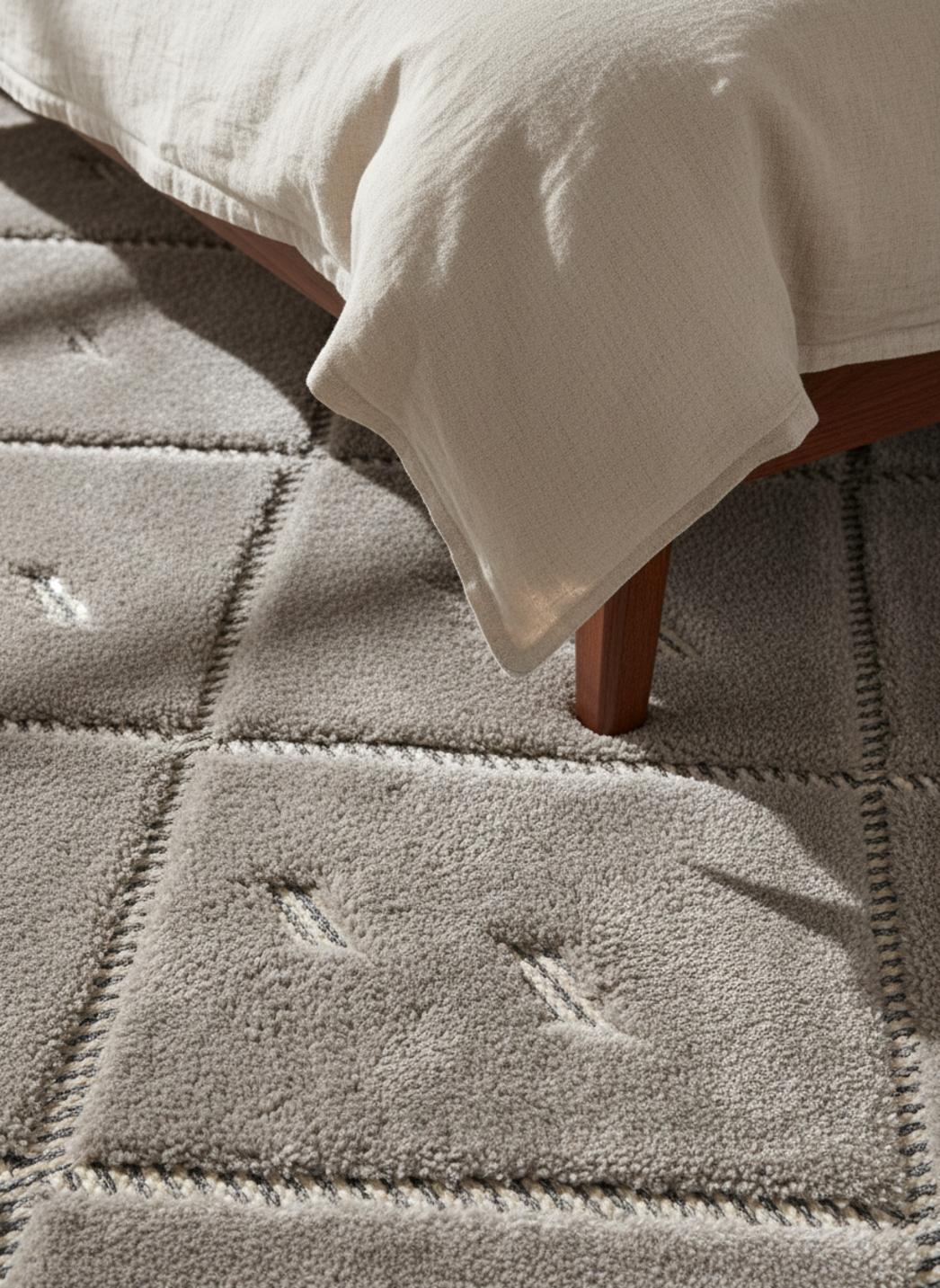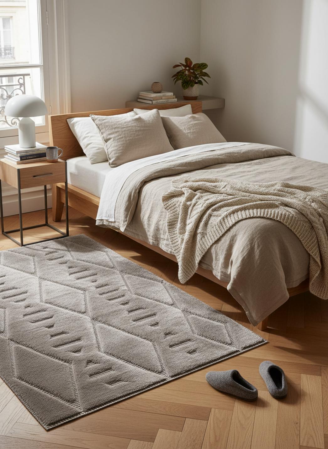 Dans un univers où la tradition se réinvente en douceur, ce tapis évoque l'élégance discrète d'un atelier marocain transposé dans un salon moderne, mêlant inspirations berbère et lignes contemporaines pour une atmosphère apaisée et enveloppante.