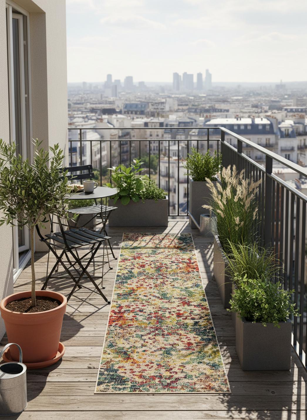 Véritable trait d’union entre couleur et matière, ce tapis contemporain tressé multicolore déroule sa texture vivante le long du couloir avec une élégance naturelle. Ses nuances se mêlent comme les fils d’un tissage artisanal, créant un jeu chromatique équilibré où chaque teinte trouve sa place. Dans une allée de terrasse, un passage abrité ou un balcon étroit, il apporte chaleur et vitalité tout en structurant l’espace. Le tressage plat révèle de légers reliefs qui captent la lumière et animent la surface avec subtilité. Ce tapis de couloir d’extérieur de 70x240 cm s’adapte à tous les environnements, du décor bohème au style moderne, en offrant une touche joyeuse et raffinée. Ses couleurs, à la fois douces et vibrantes, évoquent la convivialité des beaux jours et la spontanéité des moments partagés. Posé sur un sol en bois, en béton ou en pierre, il crée un contraste vivant et harmonieux. Chaque pas devient une expérience sensorielle, entre douceur et énergie, dans un décor qui respire la lumière. À la tombée du jour, ses teintes s’adoucissent et diffusent une atmosphère chaleureuse, transformant un simple passage en un chemin de caractère et de style. Ce tapis tressé multicolore est une célébration de la couleur, du mouvement et de la vie en plein air.