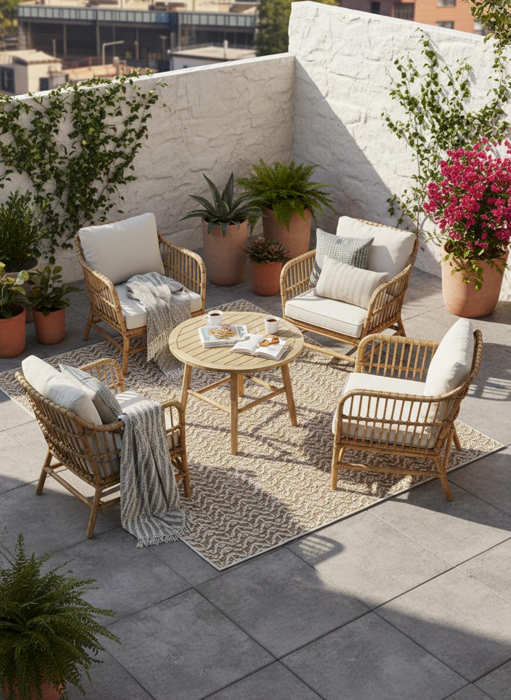 Délicat et apaisant, ce tapis au style contemporain séduit par son tressage ondulé évoquant de subtiles vagues et la douceur naturelle de sa teinte crème. Dans un format de 80x150 cm, il trouve parfaitement sa place sur une terrasse, un balcon ou un petit patio, où il apporte légèreté et élégance à la décoration extérieure. Son relief discret crée un jeu de texture qui capte la lumière et invite à la détente, rappelant la fluidité du sable ou le mouvement apaisant de l’eau. Le crème, ton clair et intemporel, diffuse une luminosité douce et s’accorde idéalement avec les matériaux bruts comme le bois, la pierre ou le rotin. Ce tapis s’intègre aussi bien dans un décor moderne que bohème, offrant un équilibre parfait entre sobriété et raffinement. Placé sous une petite table ou dans un coin lounge, il adoucit l’espace tout en lui donnant du relief. Véritable touche de sérénité, il transforme les extérieurs en lieux calmes et harmonieux, propices à la détente et à la douceur de vivre.
