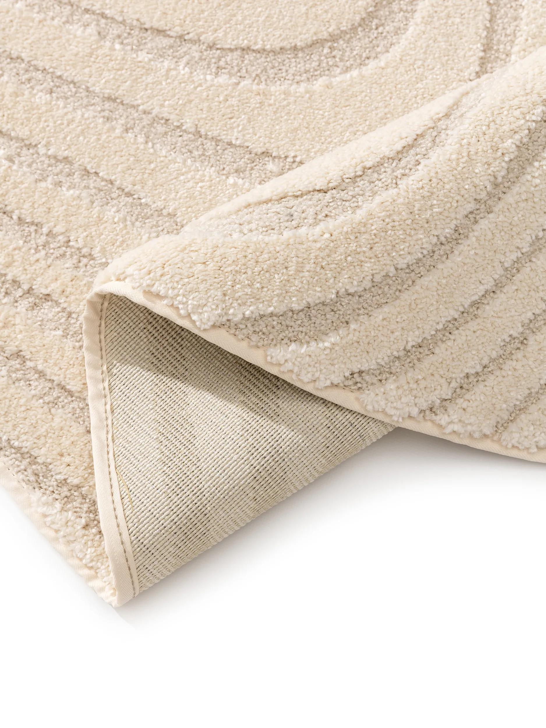 Tapis contemporain vague rainure rond crème 160x160 cm