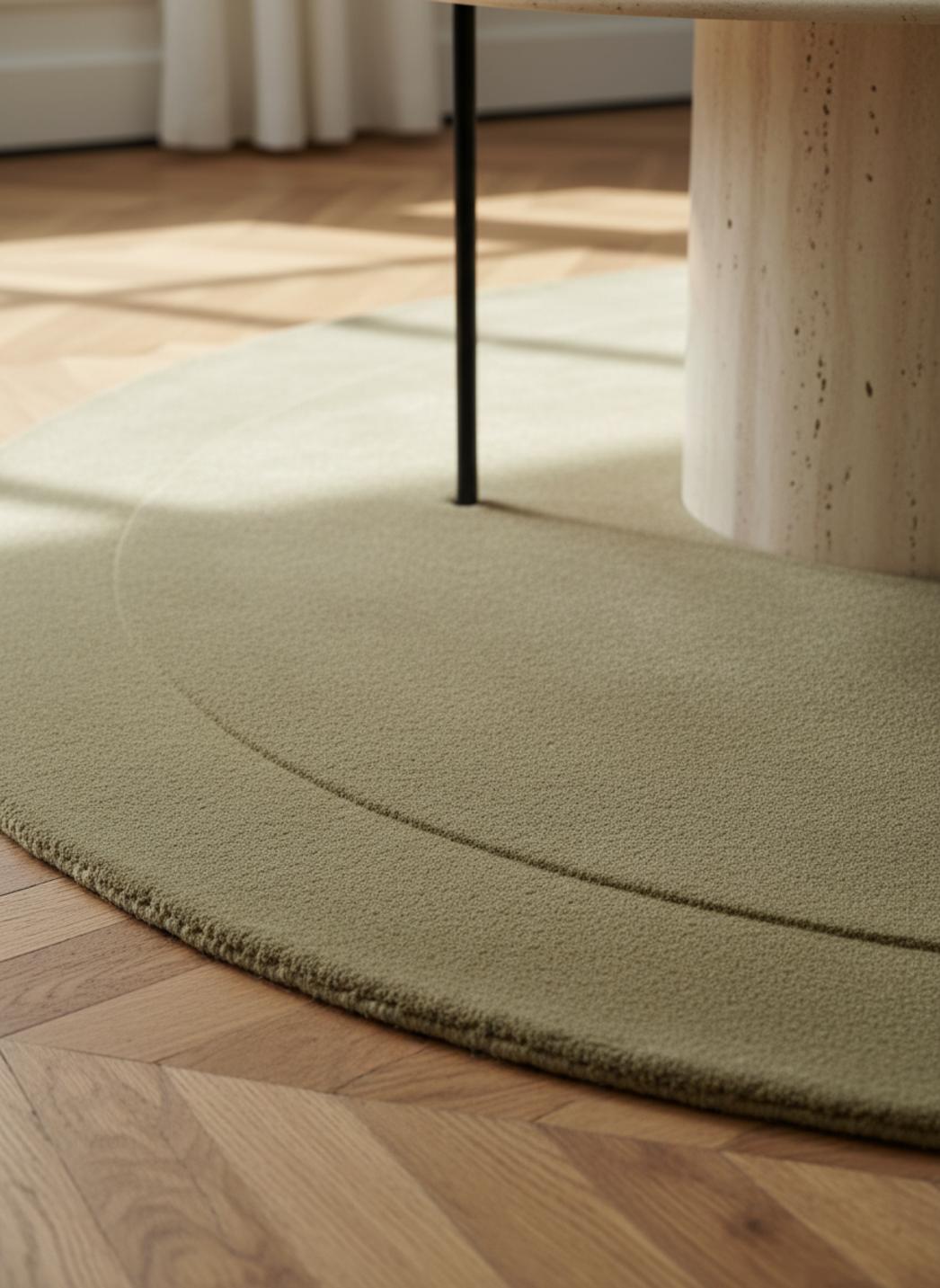 Immédiatement, la lumière glisse et s’attarde sur une pièce transformée par une présence douce et maîtrisée, une pièce où la silhouette du tapis apporte une identité apaisante. La forme ronde, pensée pour créer un centre de gravité visuel, invite à la détente et souligne la circulation du mobilier sans alourdir l’espace. Le diamètre de 200 cm confère une échelle généreuse, parfaite pour un coin salon coordonné ou un univers intimiste.